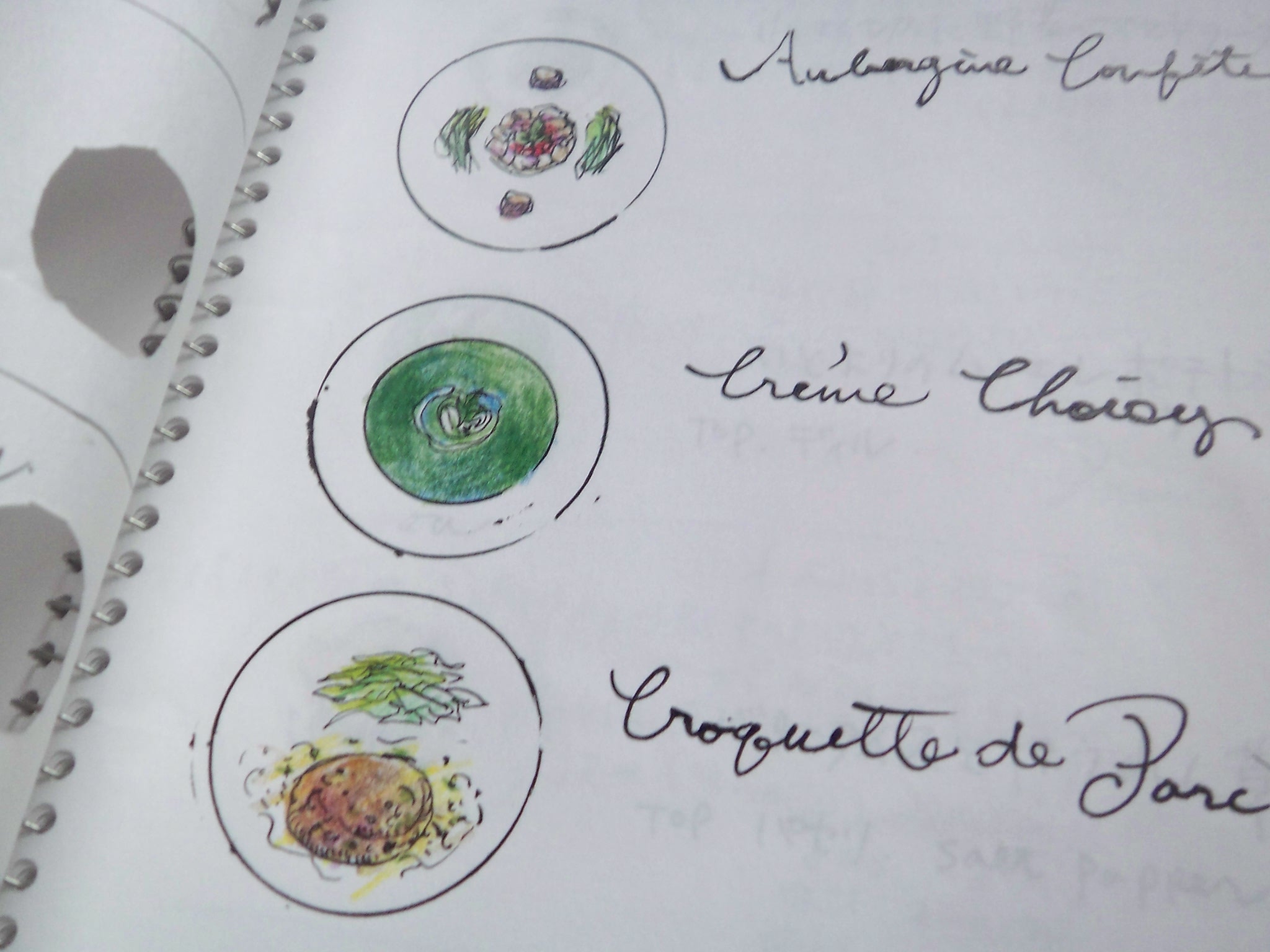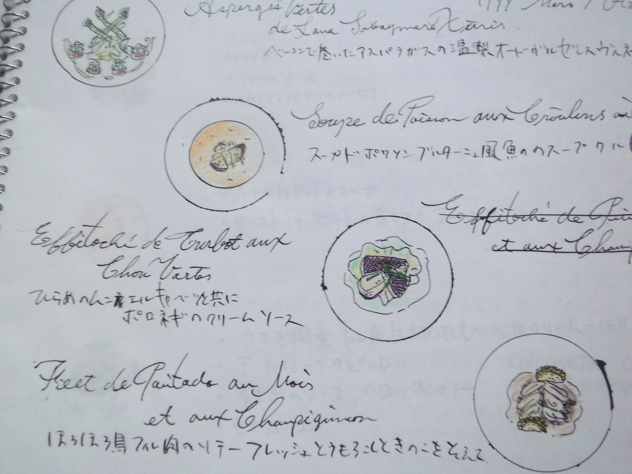 シェフはとても厳しい人で同じことを三回言わせたらスタッフはクビ。メニューも毎月変わる。私は必ず小さなノートにすべてを書き込んで忘れない様に何度も復習した。