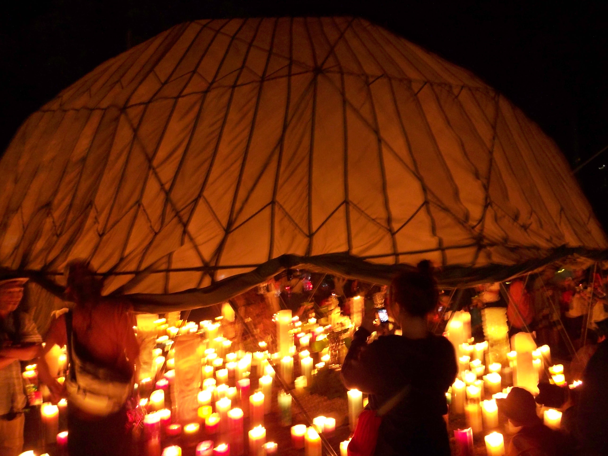 次のステージまで空き時間があるのでヘブンで腹ごしらえ、ここは食事をしながらライブも観れる文字どおり「天国」、キャンドルのアートワークが美しい。