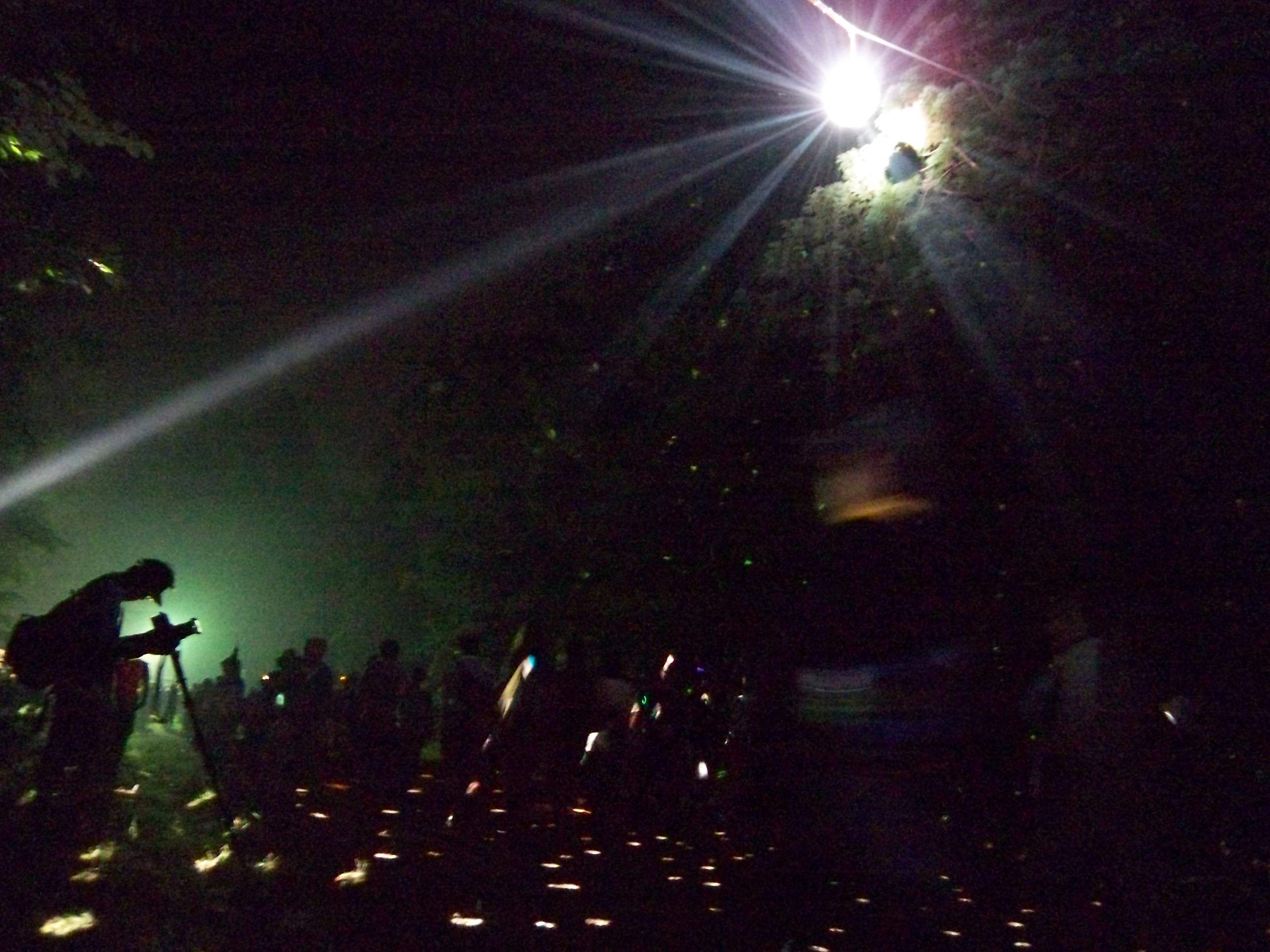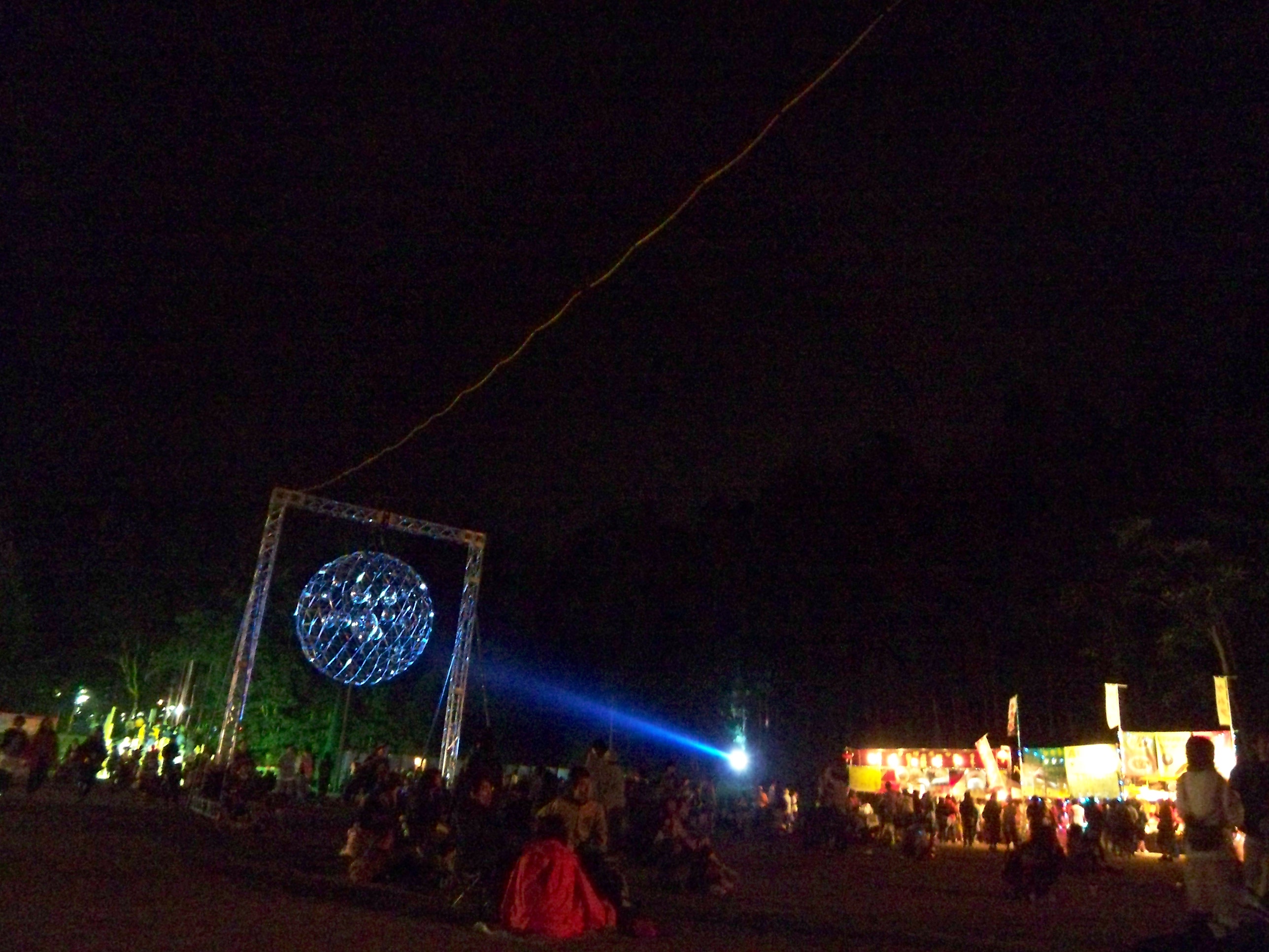 アヴァロンからヘブンへの山道、ミラーボールの光が木々や道に映る。