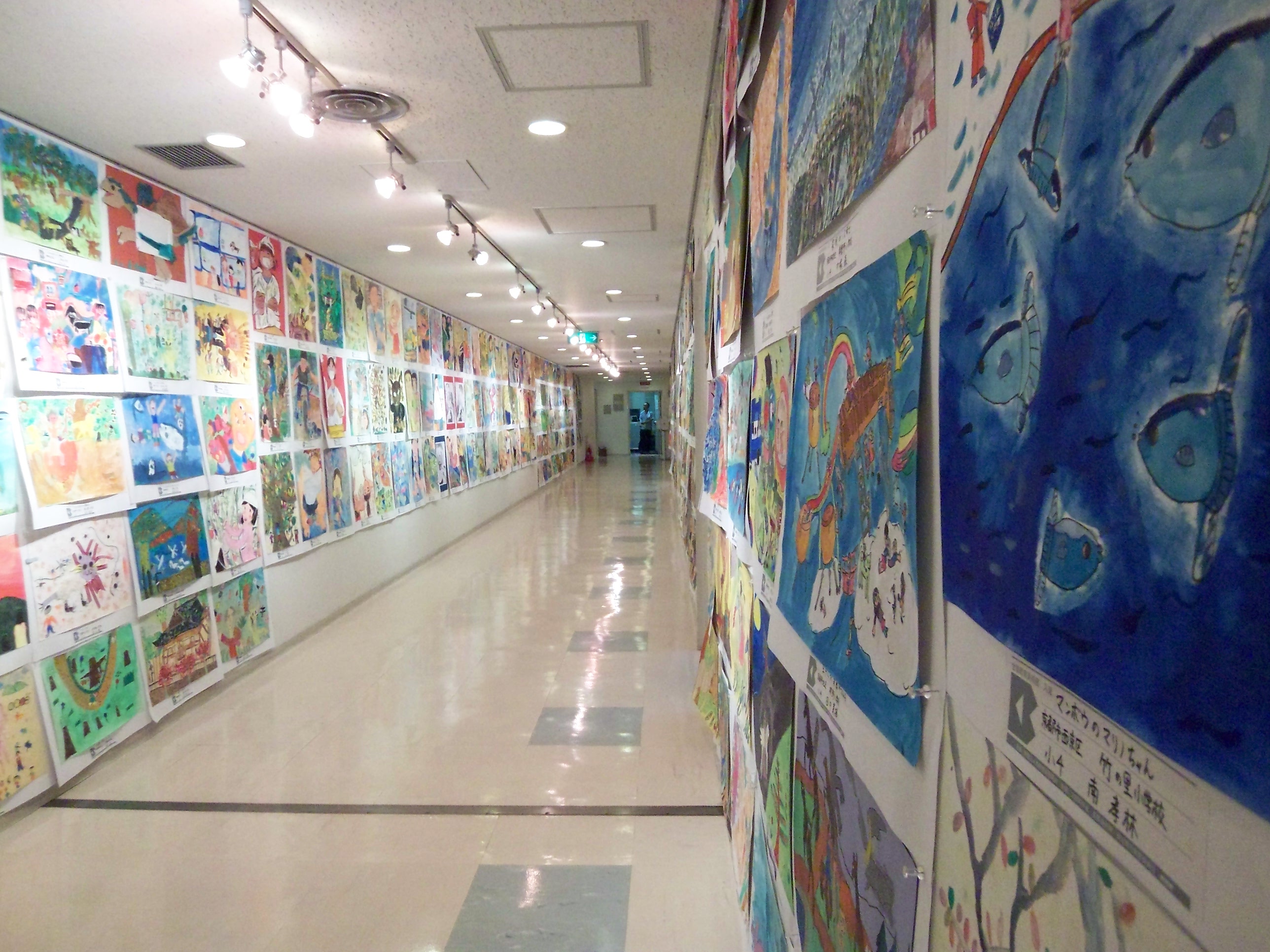 先週お邪魔した NHK京都放送局の廊下では小学生の絵画展が行われていました。打ち合わせの前にじっくり鑑賞。10歳ぐらいまでの子供たちはほんとにのびのび描く、その自由さがこちらにもちゃんと伝わってくるのが面白い。小学生も高学年になると先生の話が理解できるようになる。すると、なんと、見事に、同じ学校の子たちは似た様な構図、筆遣い、絵の具使いに!、驚いてしまう。