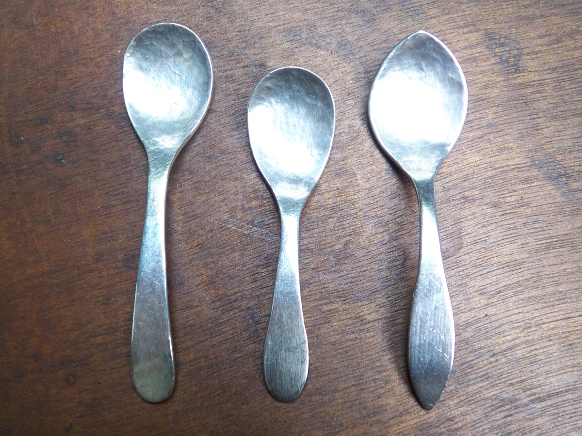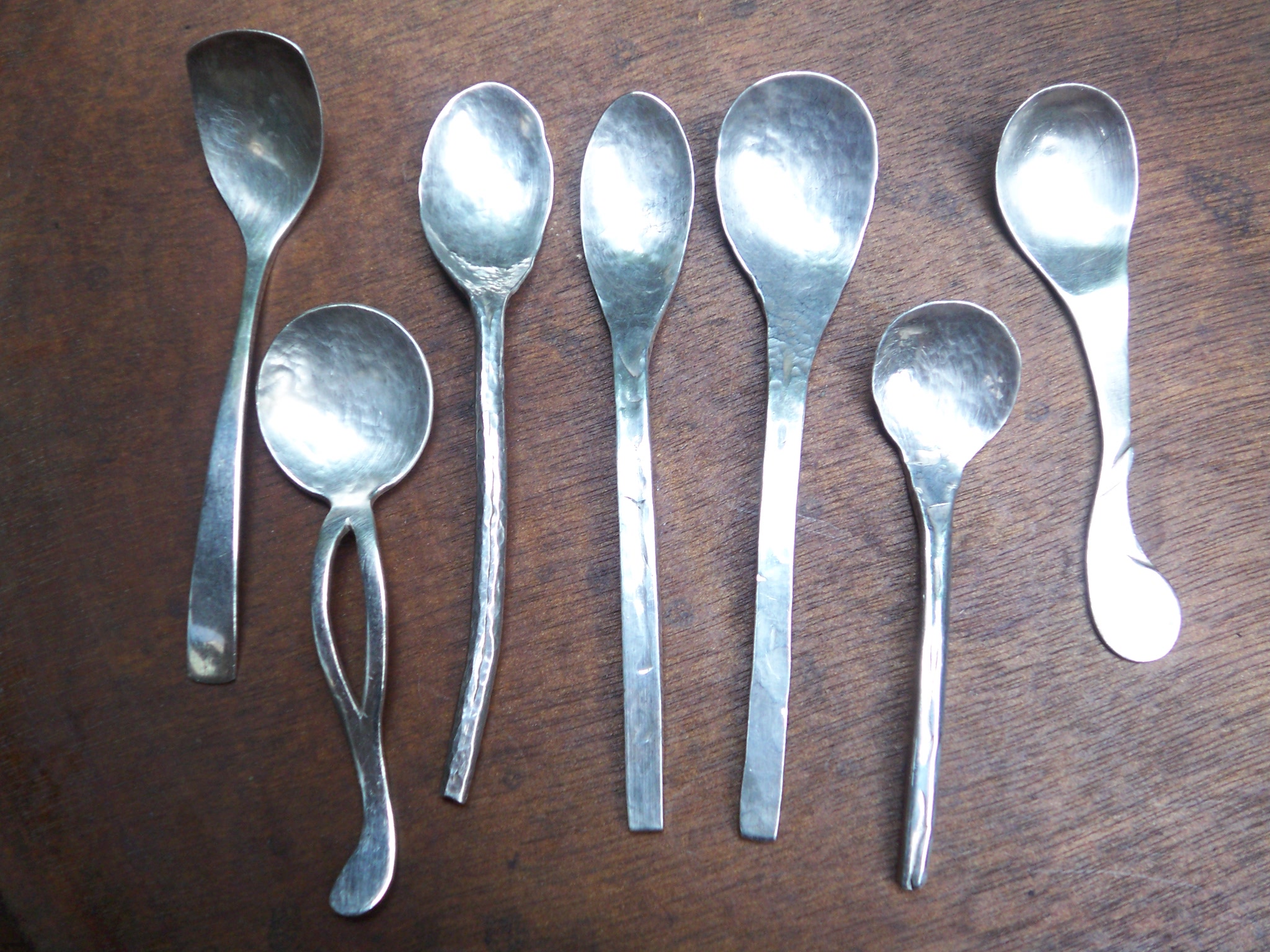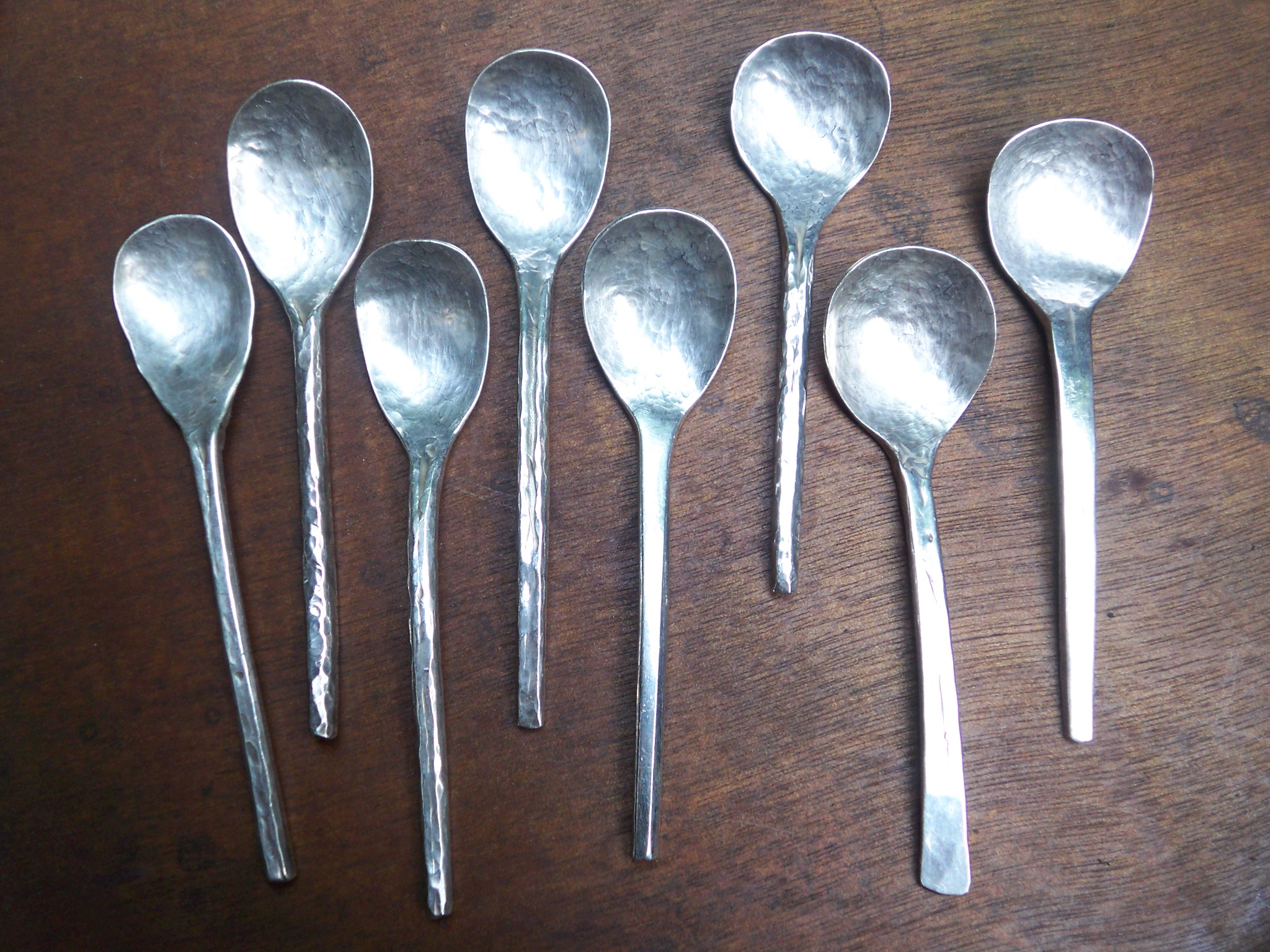 ここ数年の創作の興味はもっぱらスプーンで時間があるとこつこつと叩きだして1本づつ増やしている。広げてみるとけっこうな数になる。