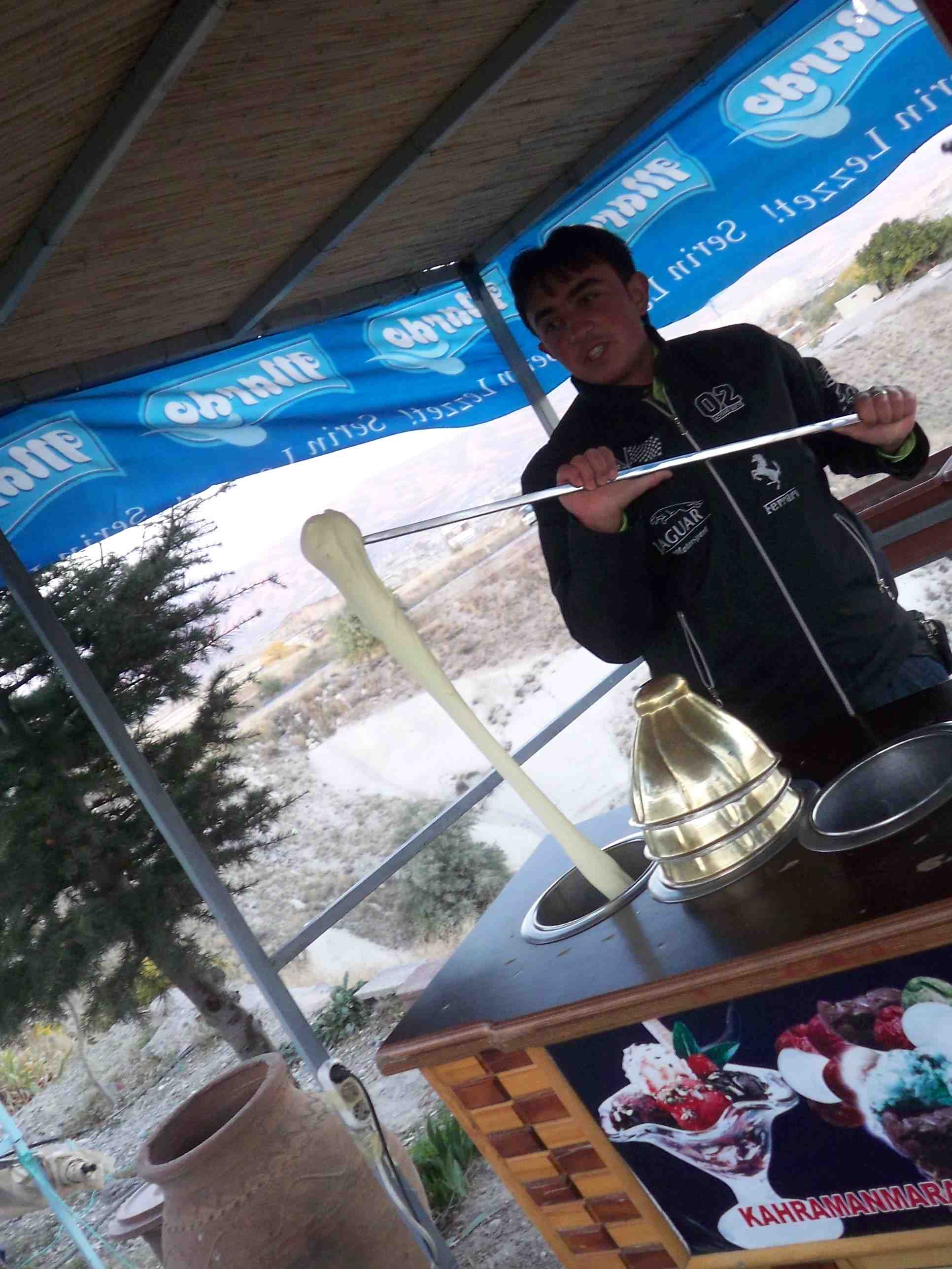 3時のおやつはトルコアイス「ドンドゥルマ」わ〜よくのびる〜。アイスクリームは得意ではないのだがパフォーマンスに負けてご購入。ゆりね(ガイドさんによる)のでんぷんがのびる素だとか。