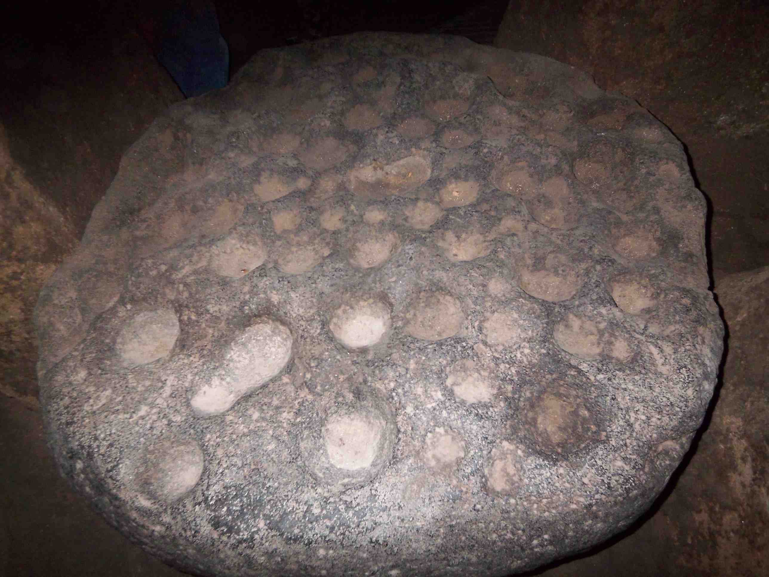 カイマクルの地下都市でたこ焼き石を発見!ではなく、ハーブや香辛料をのせるために穴があいているらしい。