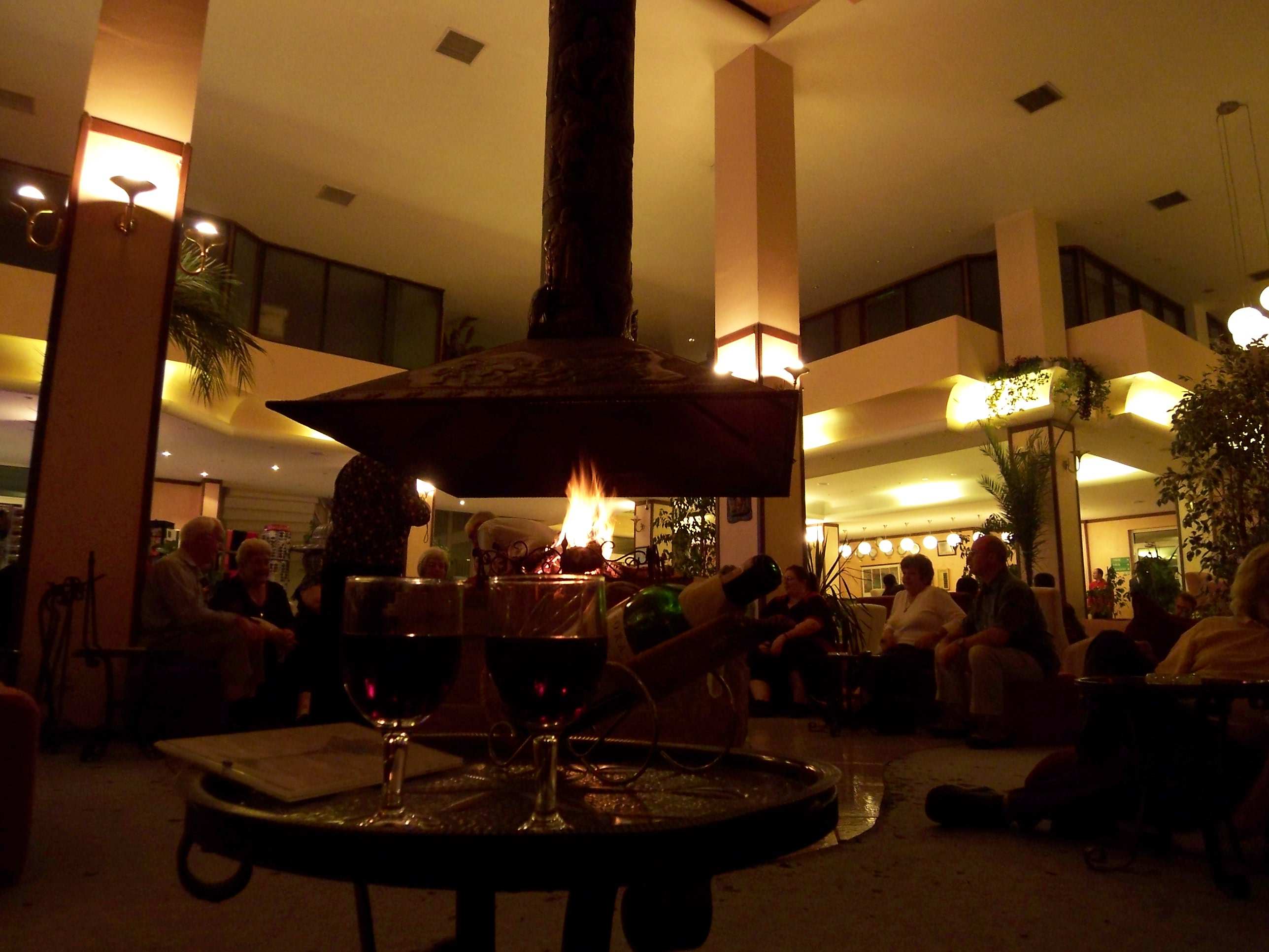 ロビーには暖炉があり、薪の火はやさしく温かく旅の緊張をほぐしてくれる。その周りには足が伸ばせるローソファーでリラックス。食後はワインでゆっくり、お世話になっているガイドのSさん(日本語ペラペラ超優秀!、仏、独、英、伊、アラビア語もできる)も交え閉店まで過す。その後部屋飲みで、、。