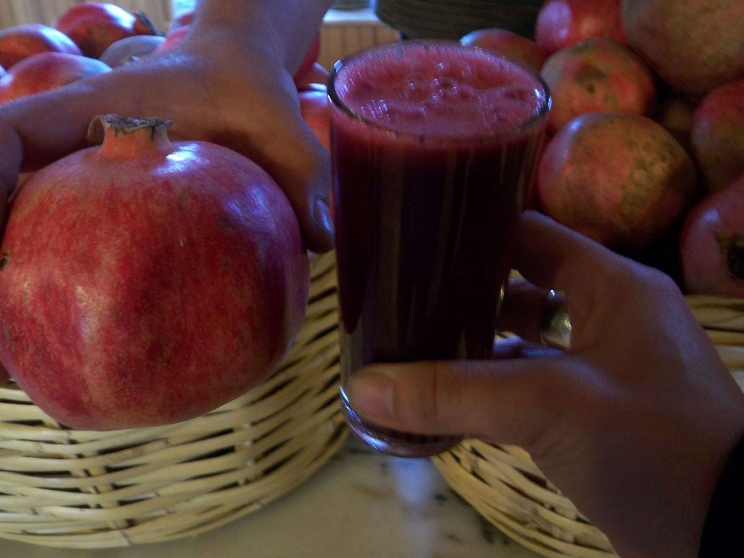 と思っていたらドライブインでなま絞りザクロジュースを体験、甘酸っぱくて美味。ザクロは水分が少ないので1杯作るのにたくさんのザクロがいる。日本では絶対無理だ。
