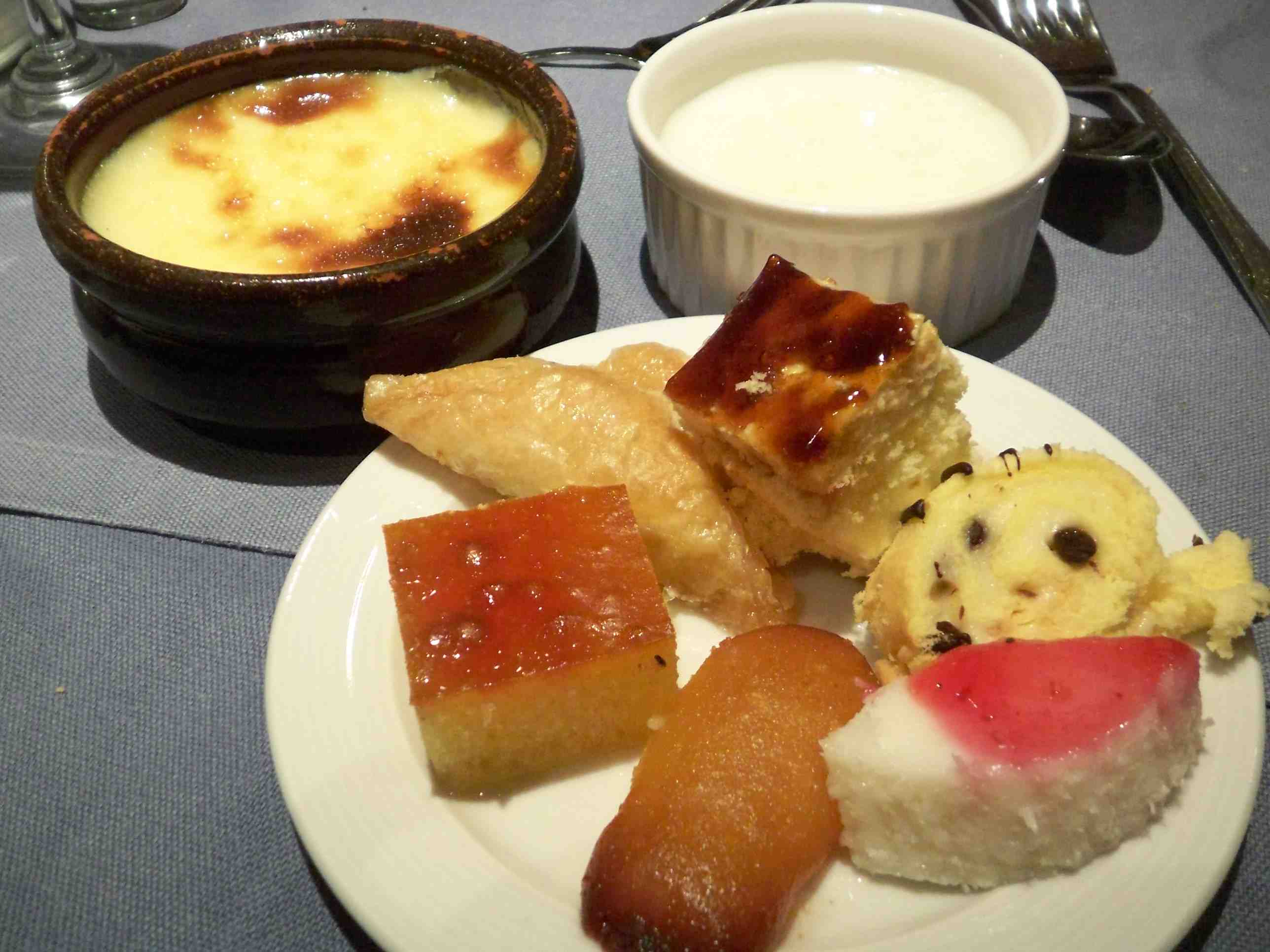 デザート盛り合わせ,シロップ漬けのパイやカステラ等、やはり激甘、、、。