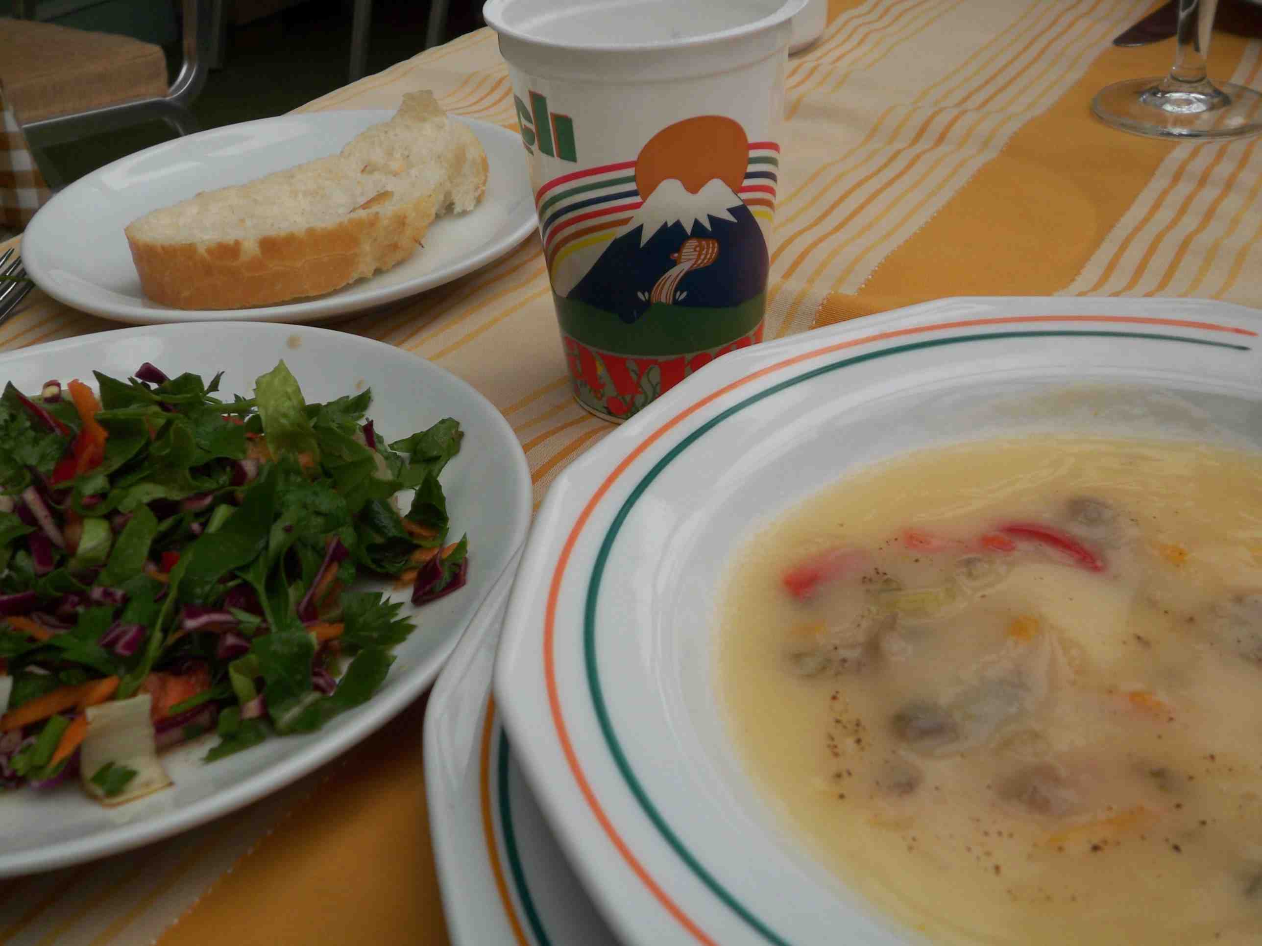 カッパドキアでさんざん茸をみてきた最後に茸のスープ。サラダにかかっていたのはザクロのドレッシング、見た目はバルサミコそっくりでルコラの様な苦い野菜によくあう。