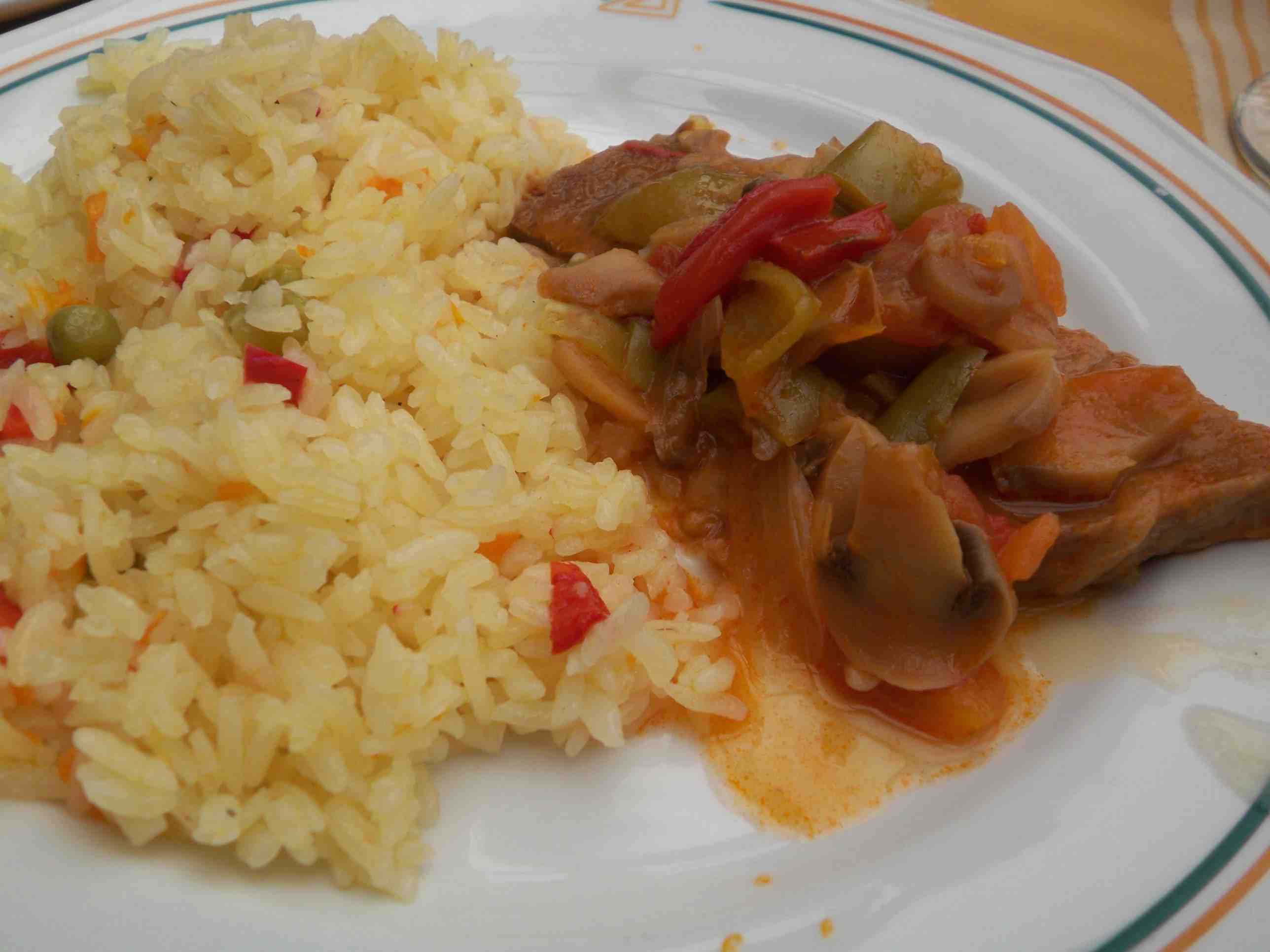 メインは牛肉のトマト煮込みピラフ添え。こちらのピラフにはバターがたっぷり入っているので食べ過ぎると胃もたれします。