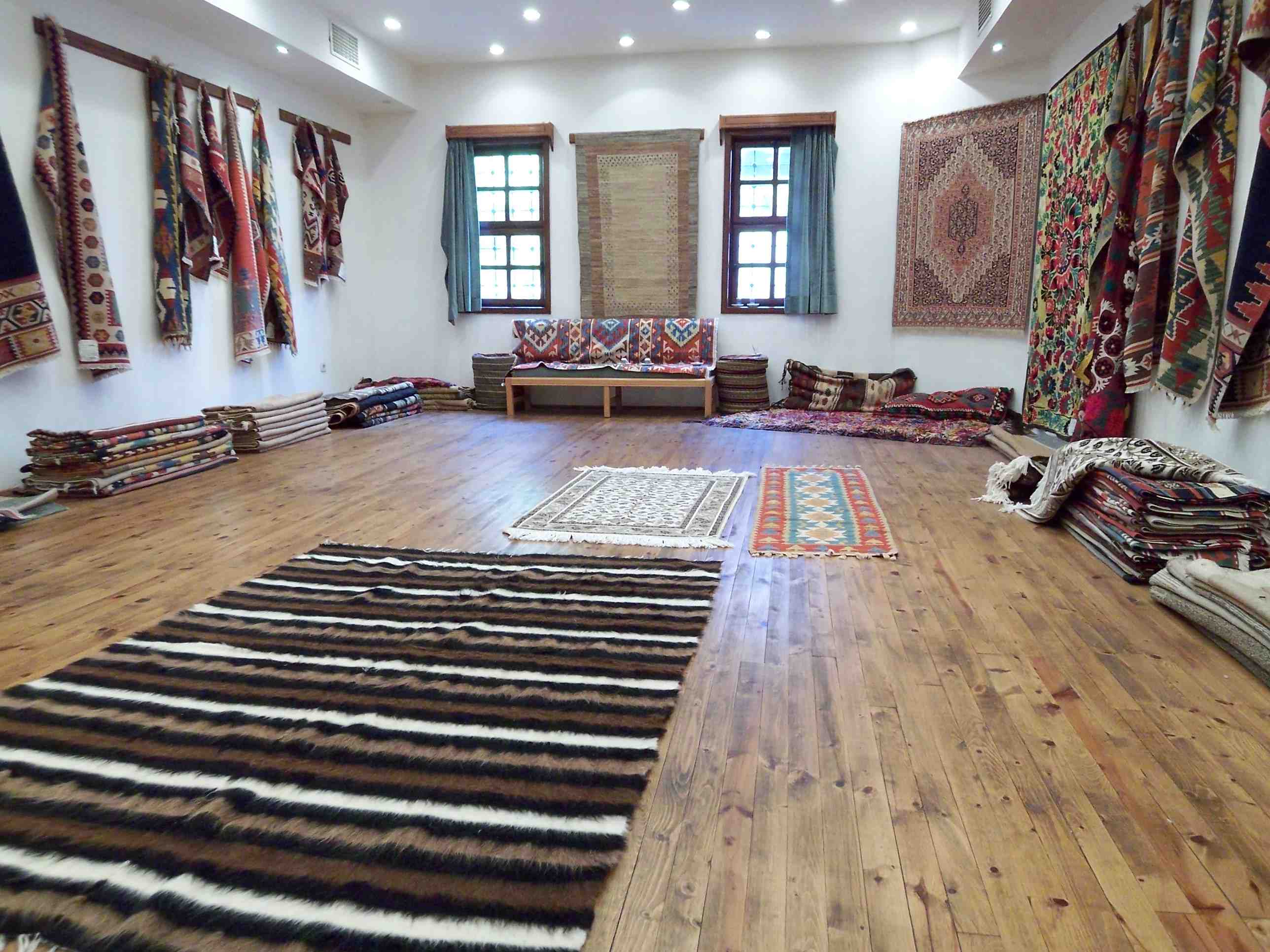 絨毯なんて買うものか!などと心の中で思いながら行ったのはずなのにハイクオリティーの物がめちゃめちゃ安い、、、う〜、目の前にずらっと並んだ絨毯にうっとり〜、結局カッパドキア地方だけで織られる染めていない羊の毛を使ったウールのラグをお買い上げ(左奥)。白、茶、濃い茶、黒色の羊の首の毛だけを使った珍しいもの。もう一つはキリムのベットカバー、キリムにヤギの毛を織り込んで起毛させているみたこともない作りのもの(手前)。