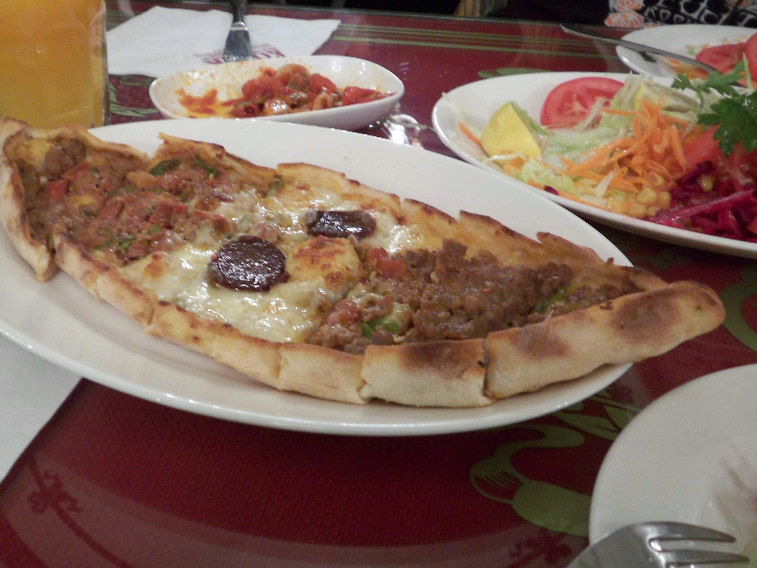 「ピデ」という名のピザ、焼きたてで香ばしく美味。