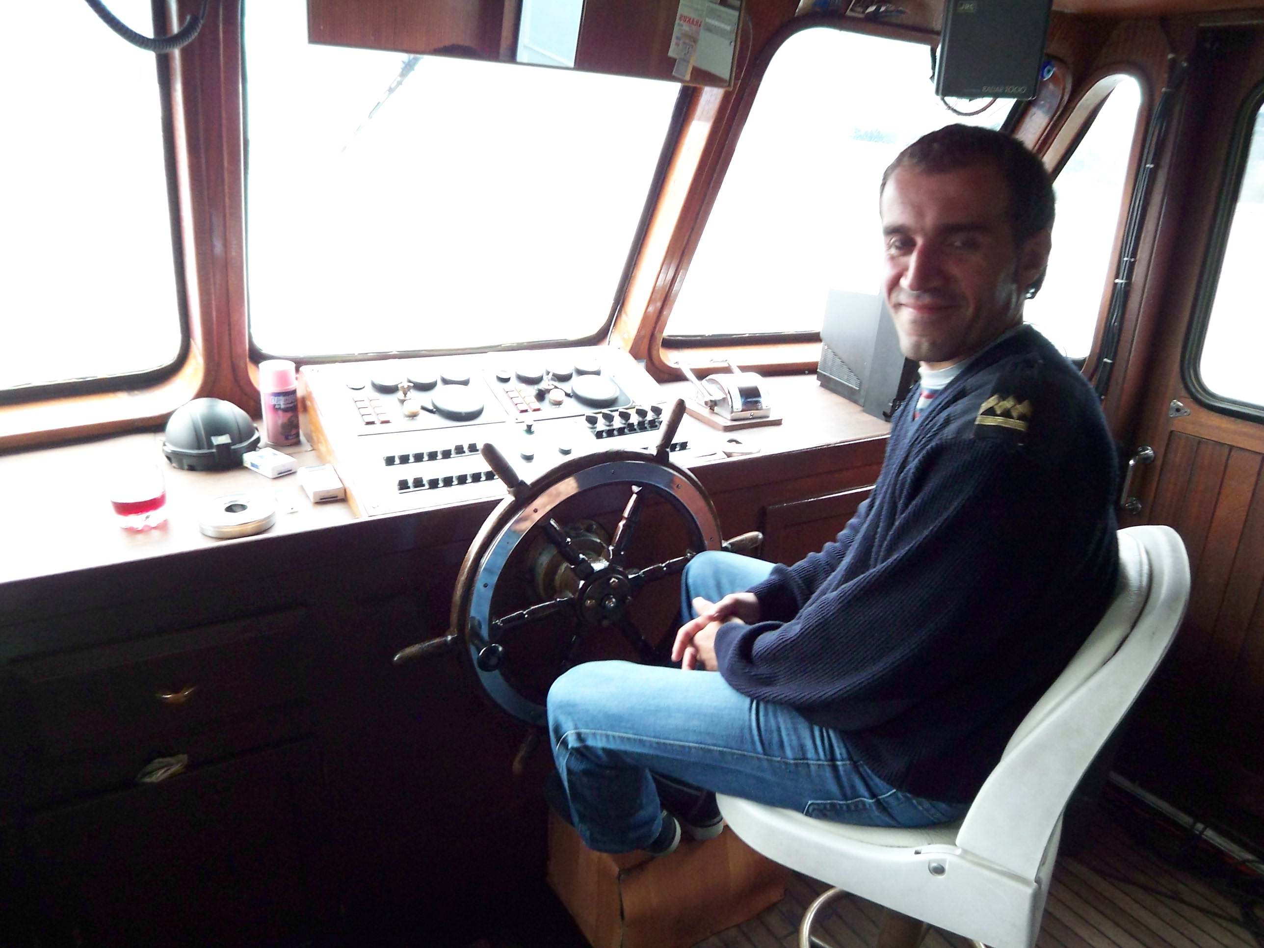 船長室にお邪魔、あ〜こっちを見ないで、舵、舵!!