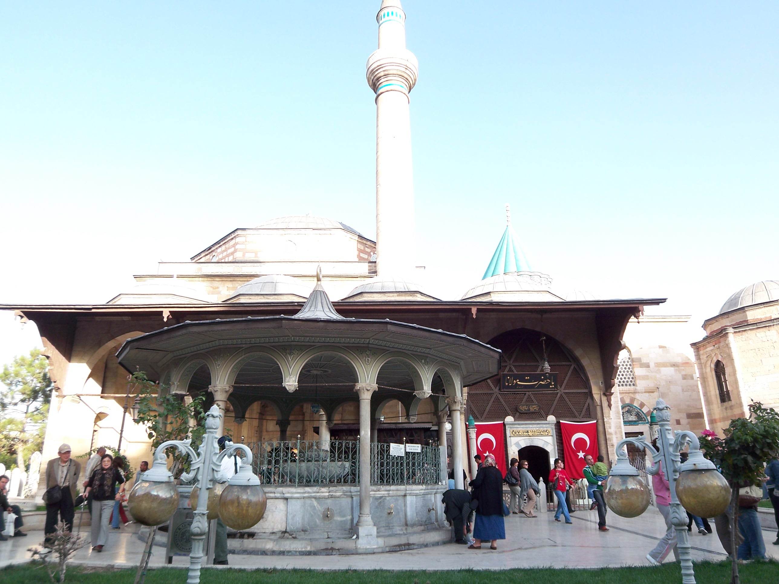 セルジュク時代の首都コンヤ、ここにメヴレヴィー教団の創始者メヴラーナの霊廟がある。トルコを旅行すると自分が今まで思い描いていたモスレムの暮らしとなんだか違うことに気がつく。お祈りをしない人,ひげのない人、スカーフをかぶらない女の人、お酒を飲む人たちが普通にいる。セルジュク時代はイスラムもまだゆるく偶像崇拝もしていた。メヴレヴィー教団は異端と言われているがいろんな宗教のことを認め寛容な教えを説いている。