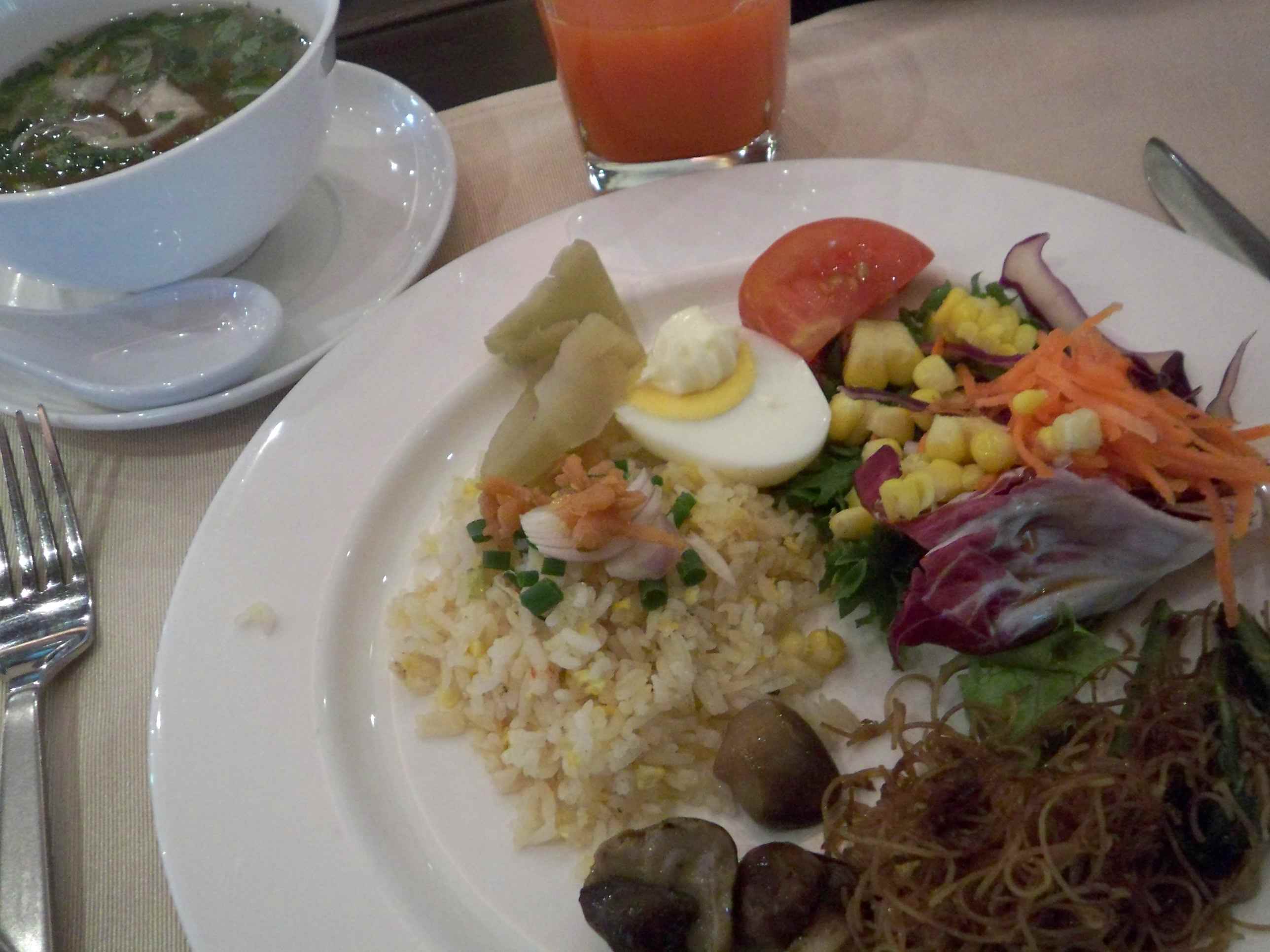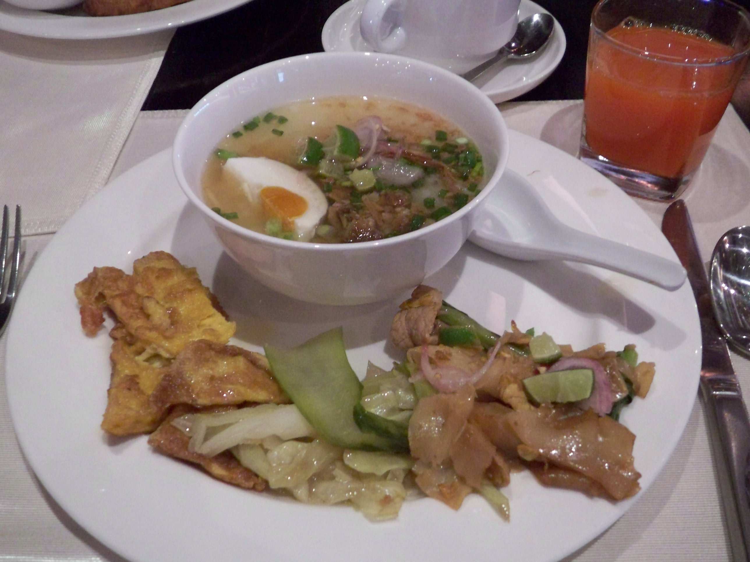 お粥さんには毎日お世話になりました。今日はポーチドエッグを厨房にオーダーしお粥をカスタマイズ、このトロ〜リとしたところがたまりません。ちょっとだけくずしてお粥に混ぜて頂きま〜す。