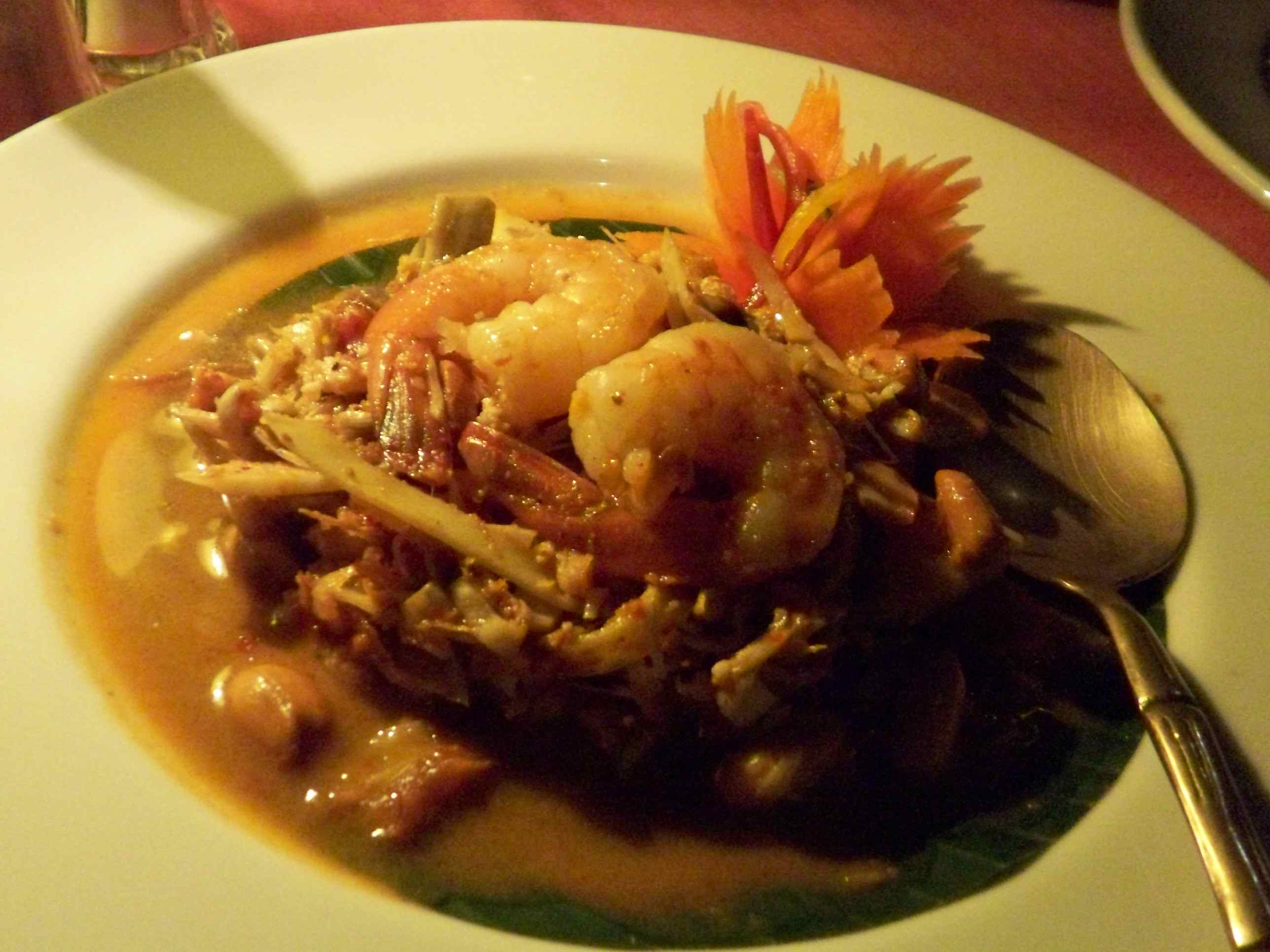 タイ産の白ワインとともに美味しく平らげ、お腹いっぱい。