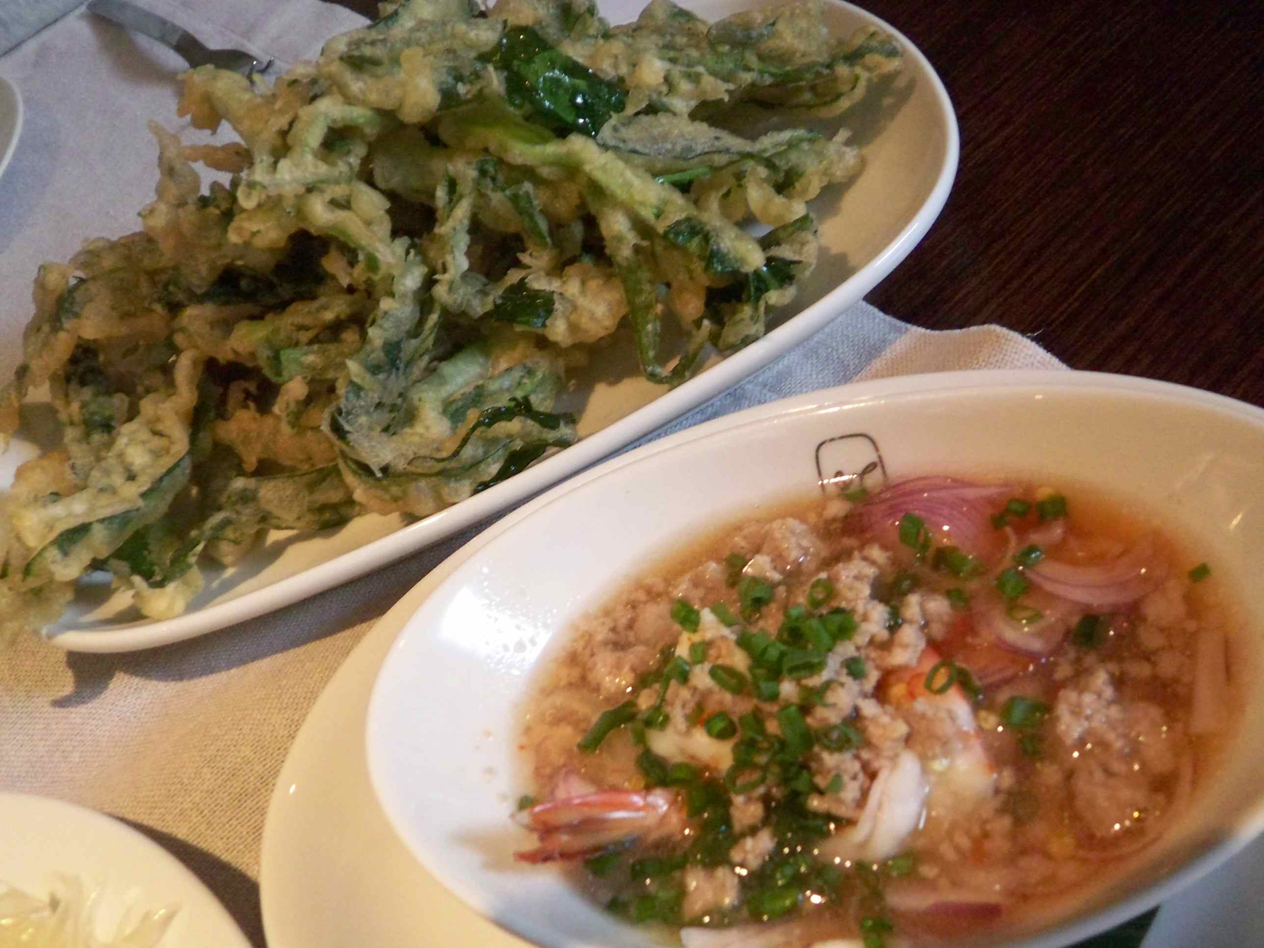 メニューにはmorning gloryのフリットと書いてある。見た感じでは空芯菜の天ぷらかな?