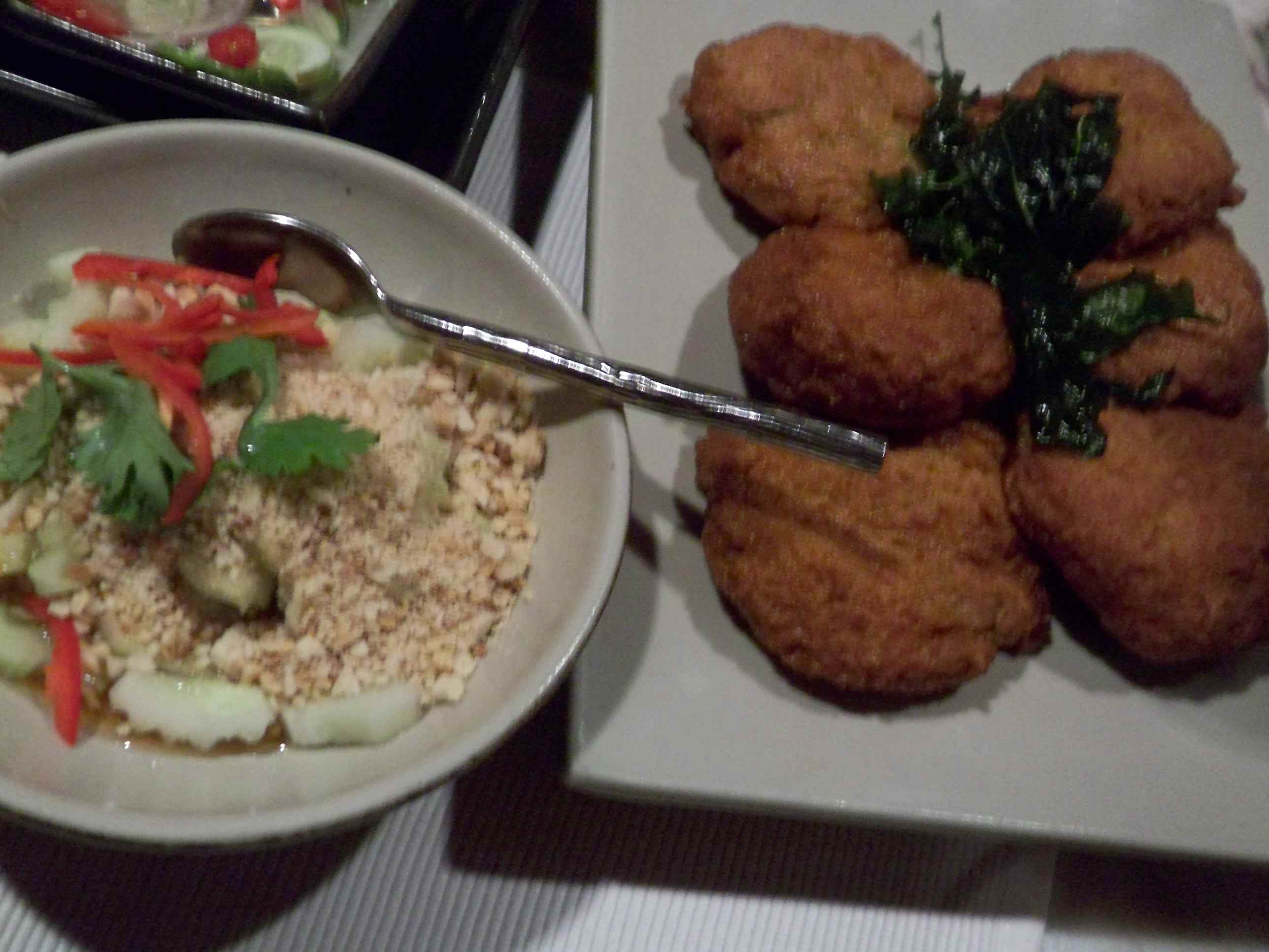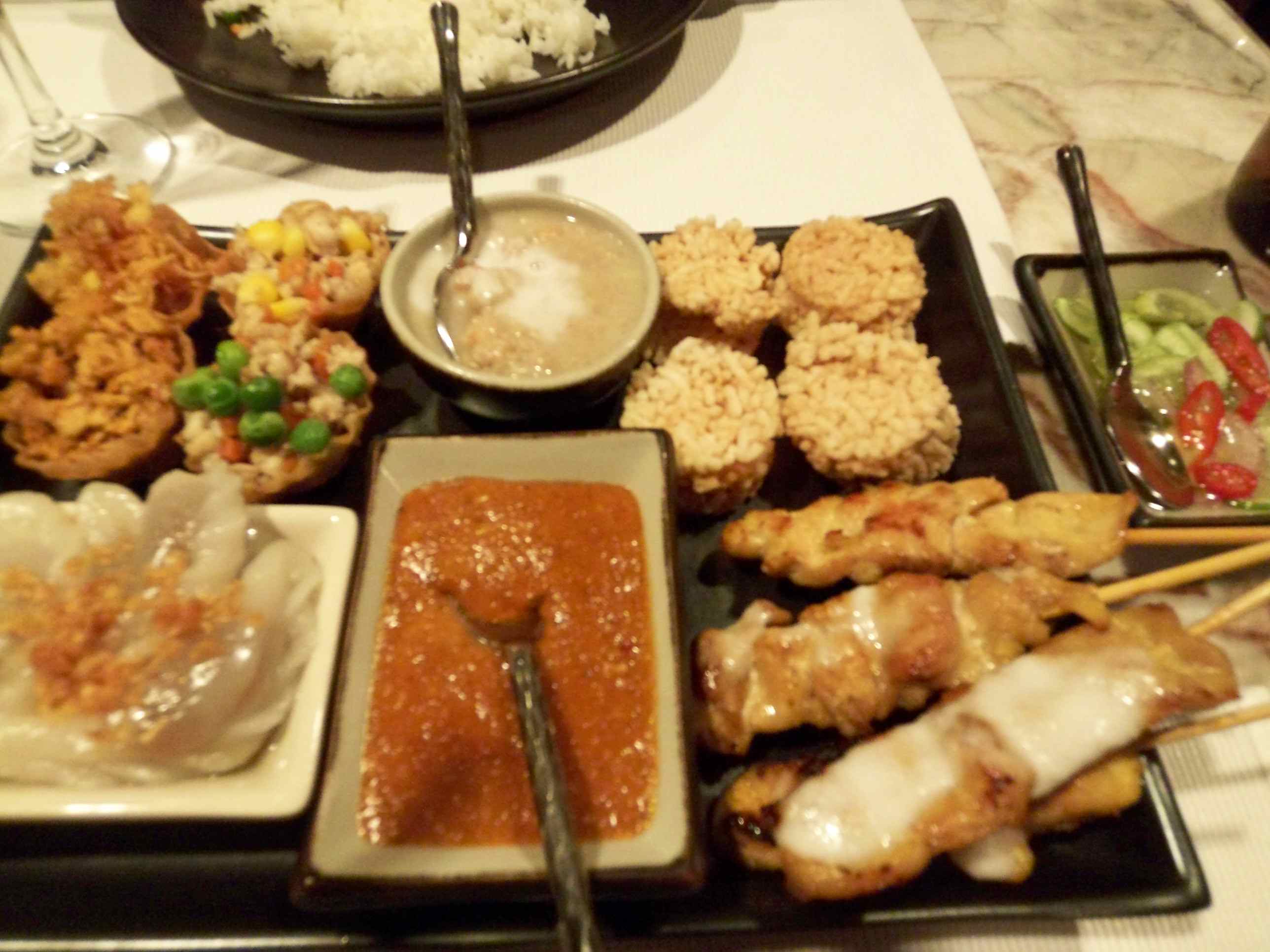 前菜盛り合わせ、小さな中華おこげをココナツソースに付けて頂くのがなかなか面白い。