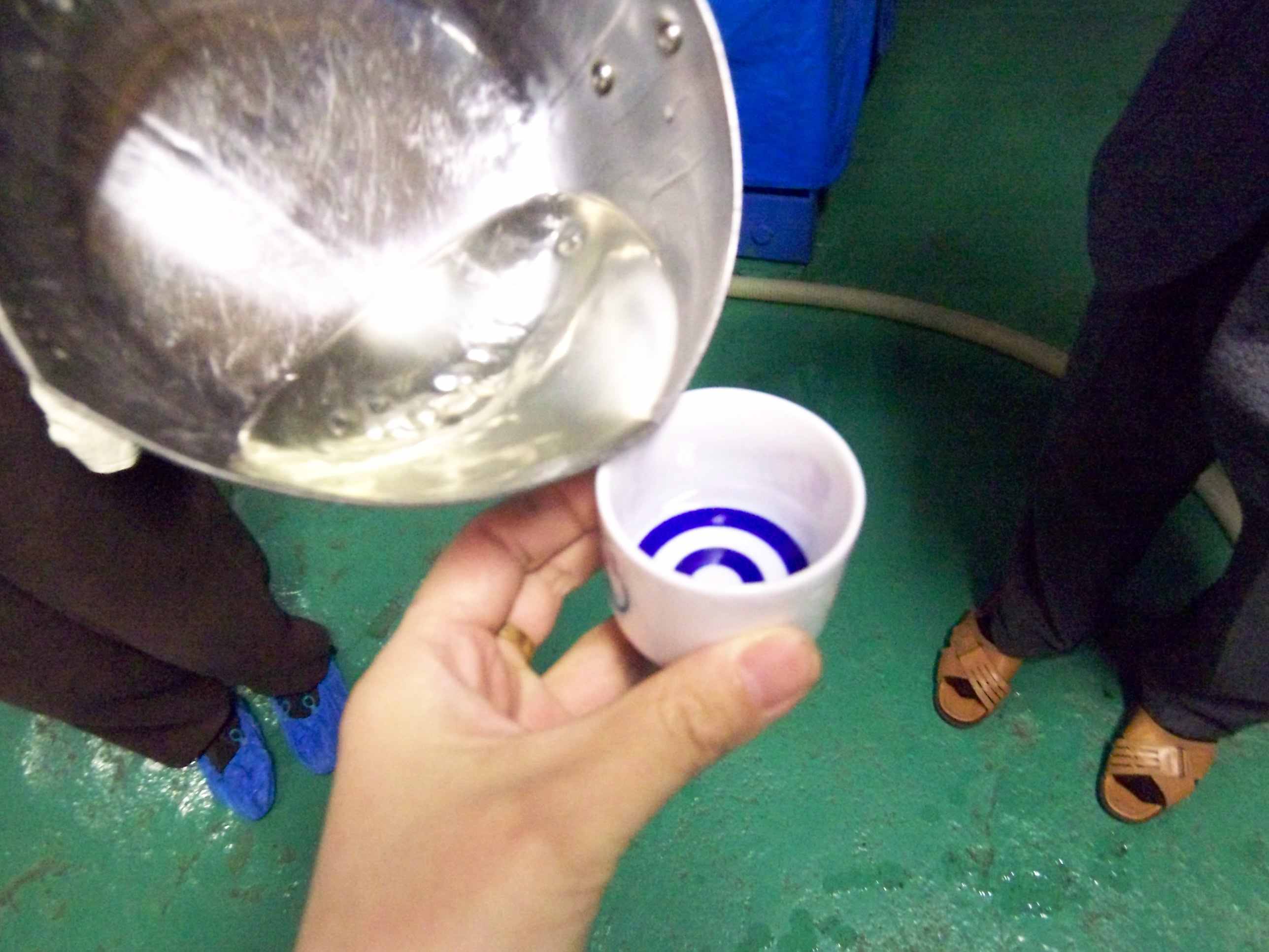 大きなアコーデオンのような濾過装置を抜け出たお酒がこれ、まだ非加熱の生の状態。濾過されたものが酒粕ですね。トーストで焼いてわさび醤油で食べると美味しいとうかがいました。
