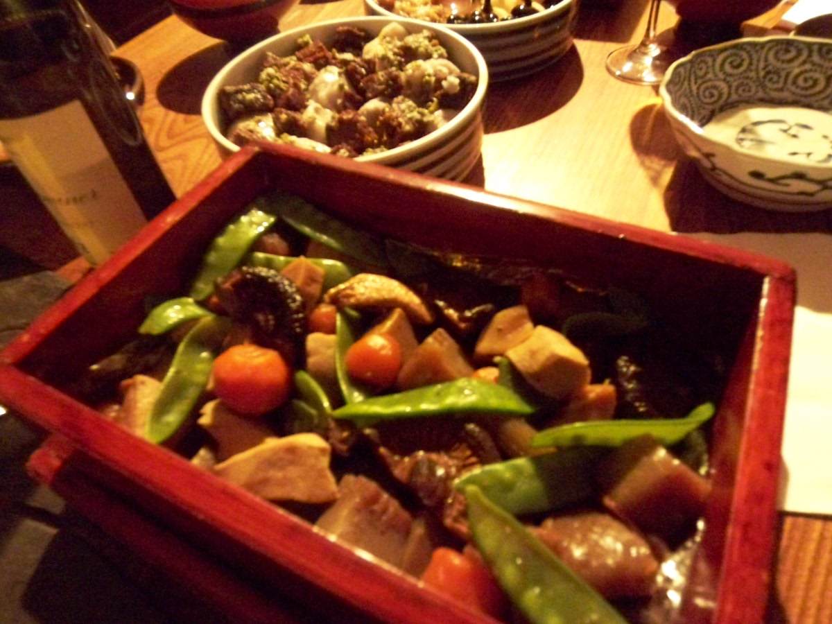 スペイン産塩ダラを塩抜きして炊いた棒ダラと、インドネシア産海老芋のそっくりさんがすばらしい近似値で芋棒に仕上がっとります。その他、黒豆の炊いたん。中国くわい、くりきんとん、特製からすみとブルーチーズのサラダ。などなど、わが家よりもはるかに美しく、力のこもったお節に驚かされてしまいます、ブラーボ!!!