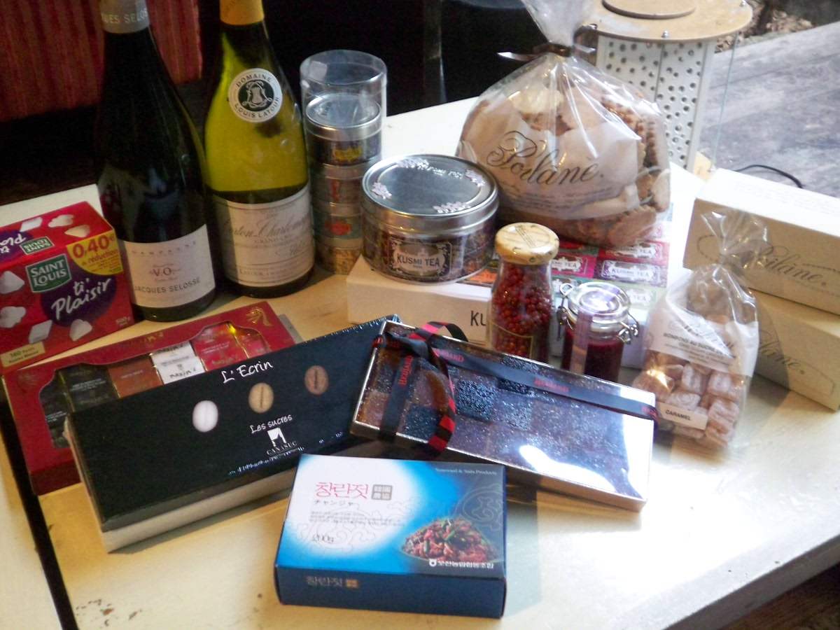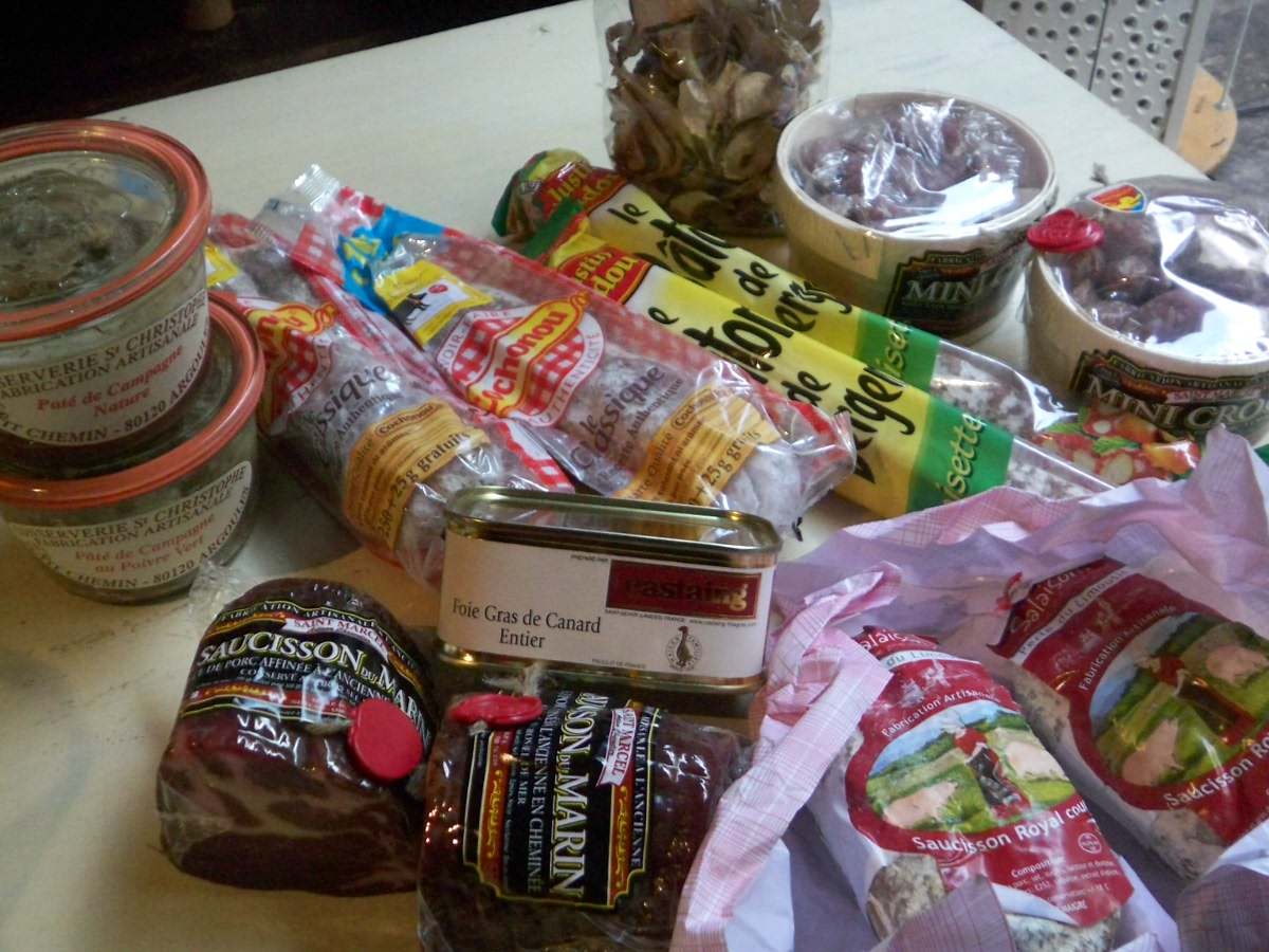 チーズ各種、というか山盛りで、、かばんあけたら臭かった(泣)。 サラミやパテもてんこ盛り。 ポワラーヌの巨大クッキー、クスミの紅茶があれこれ、その他チョコレートに砂糖菓子など。そしてなぜかチャンジャ(ソウル経由だったもので)。個人的な買い物はジャック セロスのシャンパーニュ、ルイ ラトゥールの2000年コルトンシャルルマーニュそれとDiorのマスカラ。買い物のほとんどすべてが食材。せっかく街中セールだったのに〜。