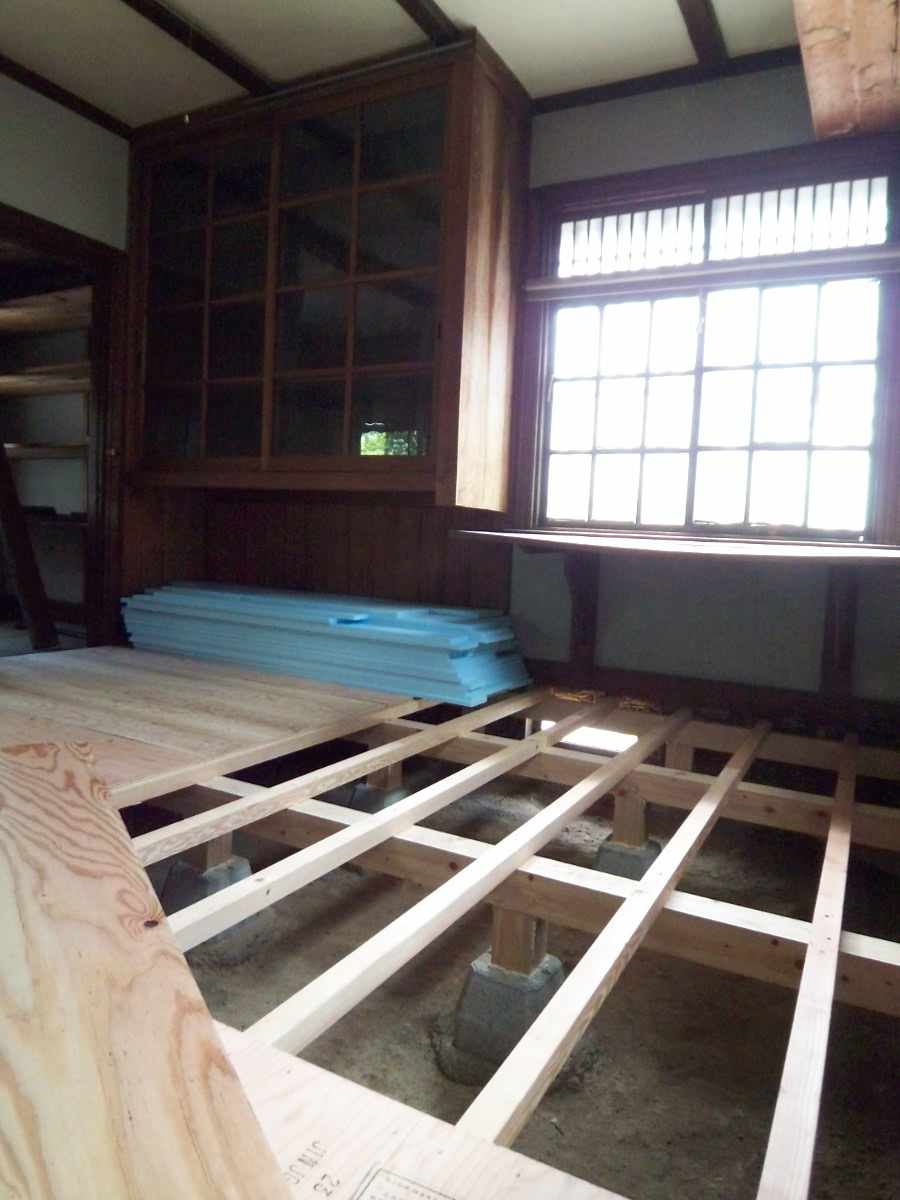 この間、わずか1日。は、はやい、、、 大正時代末期に設計された洋室の床を剥ぐと煉瓦の土台があらわれた。 わが家の蔵書、1万冊の本を格納すべく床下を補強中。 壁は相変わらず、家族と親戚、友人たちで塗り、 夏の庭、というか、ほとんど森。は、いつだって山に帰ろうとあの手この手でいろんな子たちが生えてくる。日々格闘。