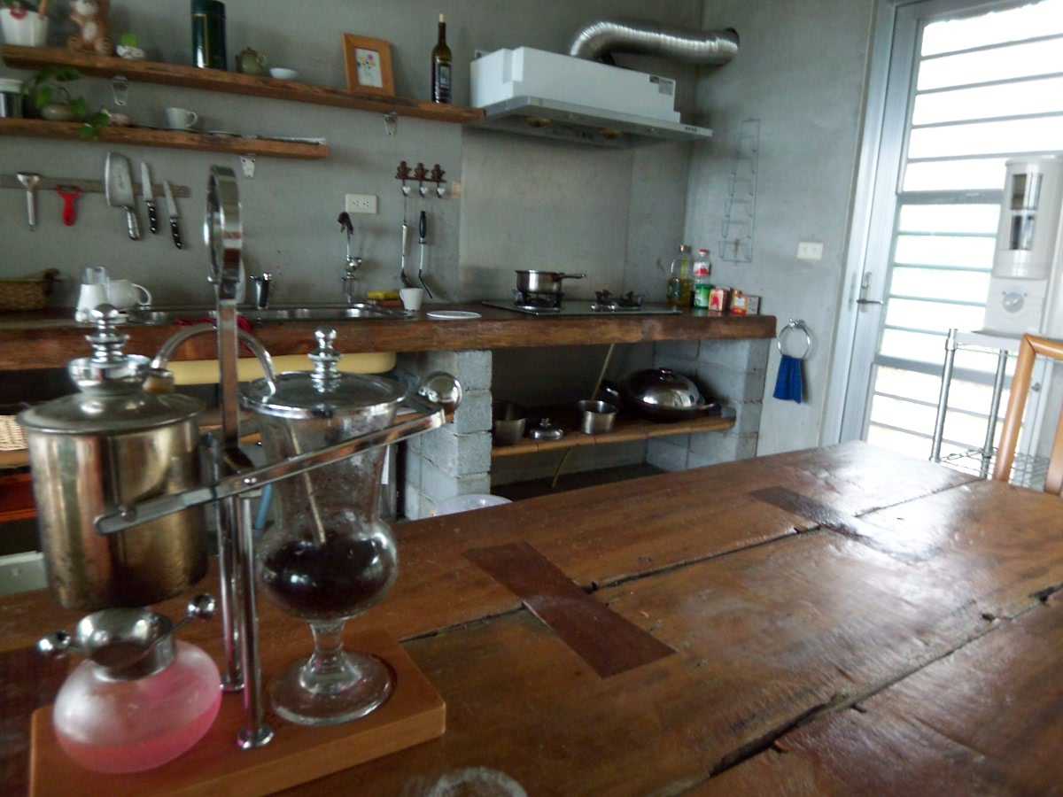 宿にはここのおやじさんが趣味人であること思わせるようなものがちらほら、簡素で気持ちの良い浴室、ちょっとかわった照明器具、フォルモサの本、そしてサイフォンコーヒー。のんびりした朝にはコーヒーがポコポコ沸くのを眺めるのも又おつなもので、、そんなことをしていたらハワイが私たちを迎えにきてくれた。