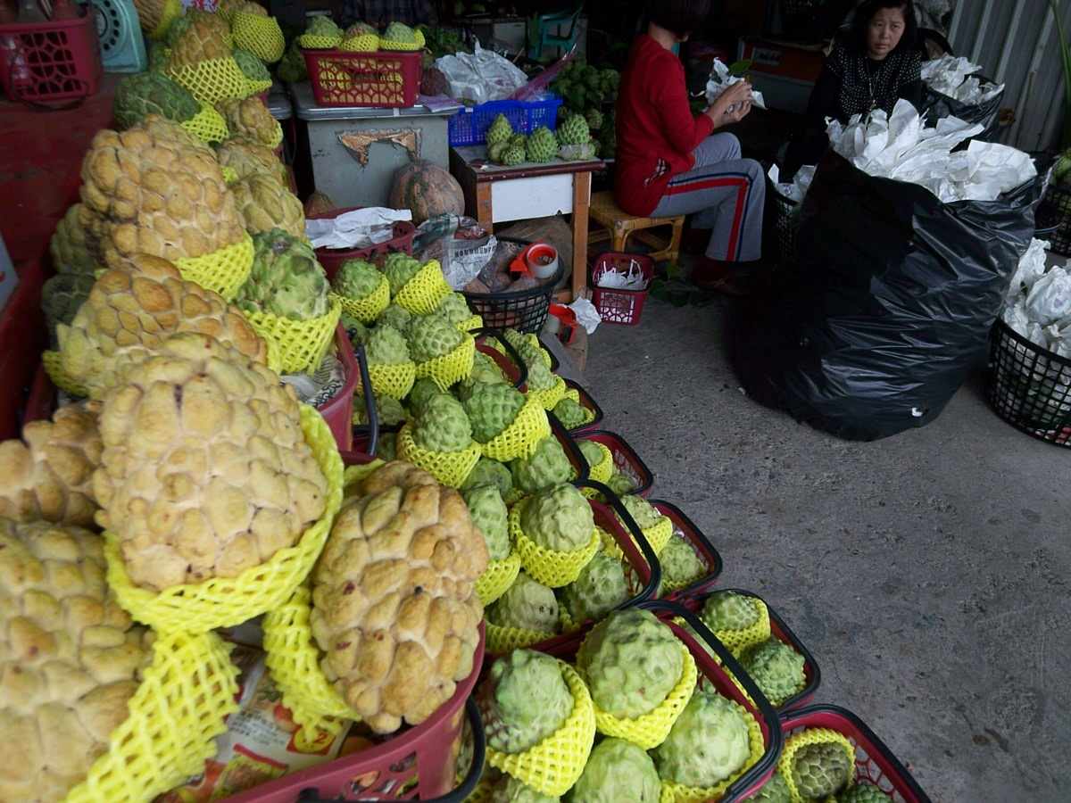 道の横の売店で釈迦頭(しゃかとう)を食す。生まれて初めての釈迦頭体験(漢字で書くとへん?)こんな形で。ほんとにラホツだらけ、台東の名産でここで食べるのが一番美味しい。