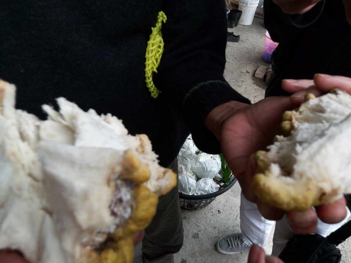 ねっとりと、蜜の様に甘く、ライチの様に香る。食感はねばりのあるマンゴーで味は熟したラフランス。青いのと、黄色いのは種類が違い味も香りも違う。あっさりしたいときは青いのがお勧め、こっくり行きたいときは黄色い方で、味見と言いながら次々と勝手に割っては私ら食い尽くす。