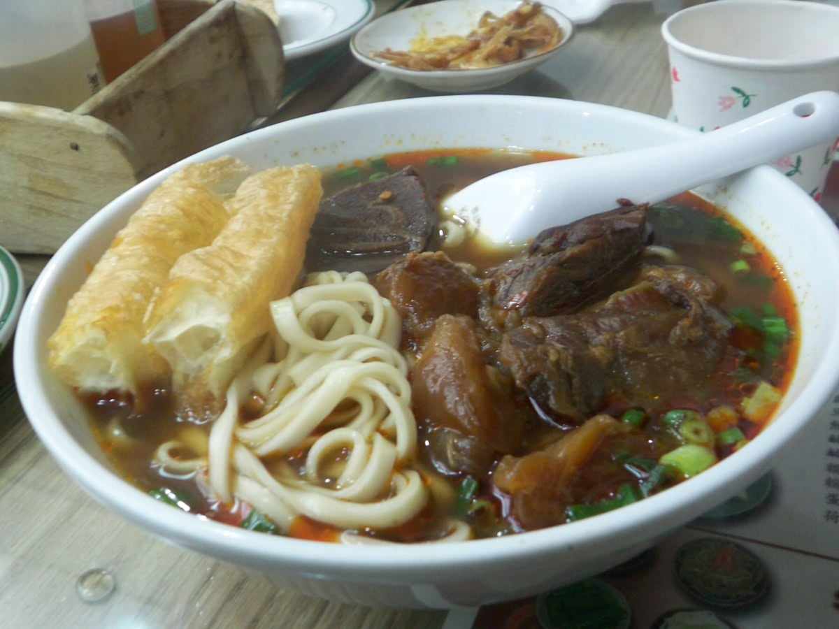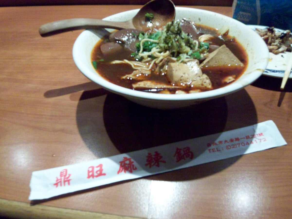 アヒルの血を固めたぷにゅぷにゅしたものとお豆腐ののったマーラーメン、香り高い辛さが胃を刺激。食べても食べても減らない、日本の1,5倍はある。
