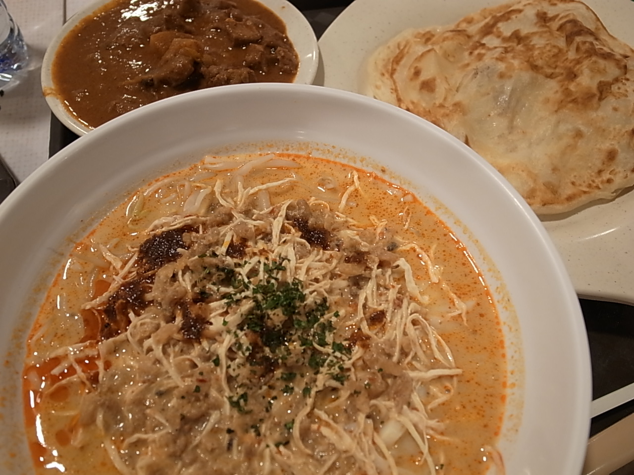 次の日の夕方にはシンガポールのチャンギ国際空港にいた。フードコートでは早速ココナツミルクの甘い香りのラクサ麺、それにカレーとロティ(お節もいいけどカレーもね、)