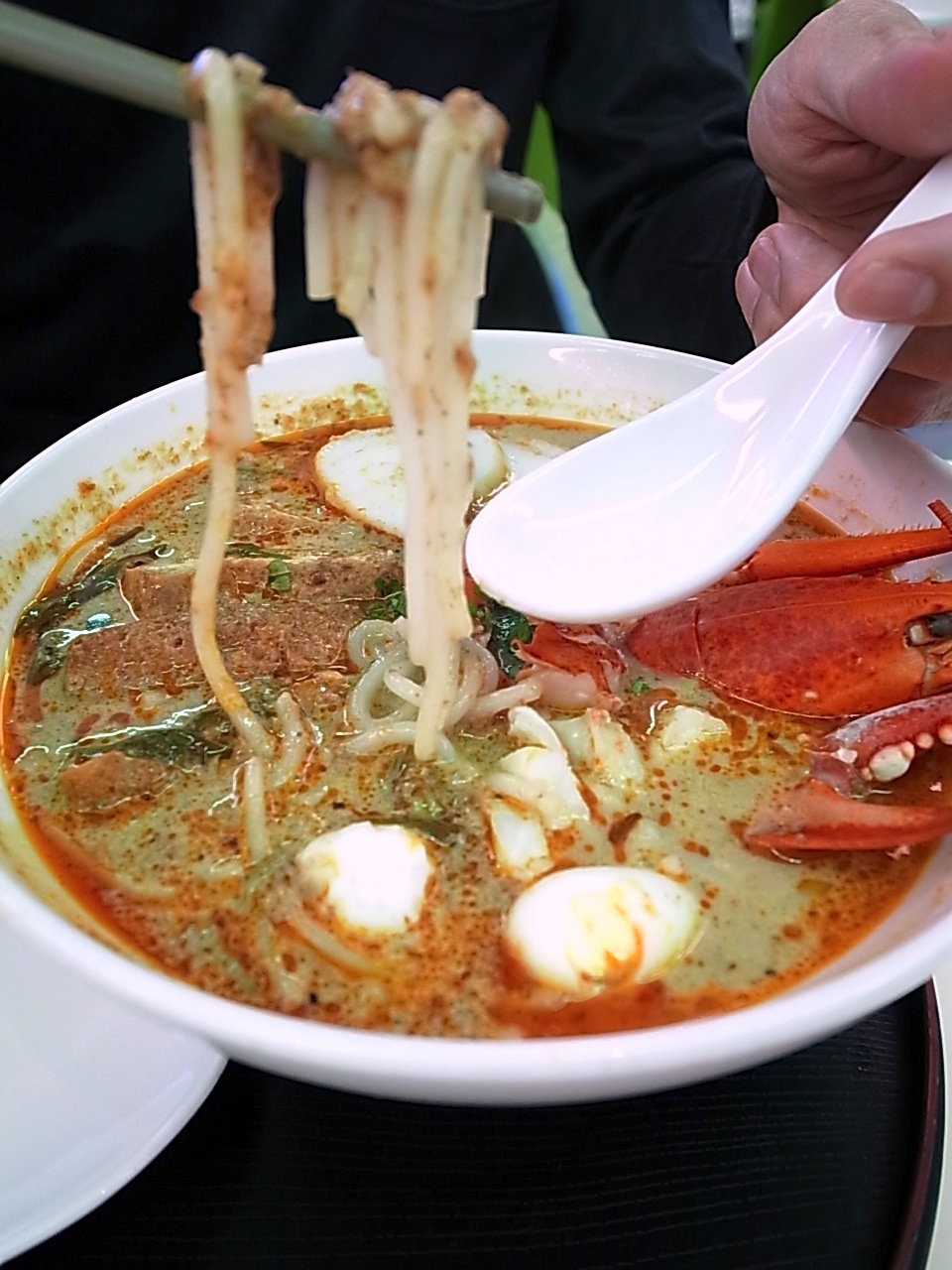 3人だったのでそれぞれ違うメニューをと「ロブスターラクサヌードル」メニューには普通のラクサがない。さすがは高級店!ビスクのようなスープのだしが絶品。