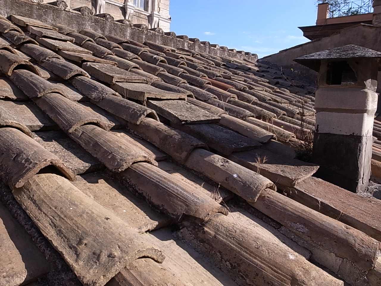 ホテルの屋上でいい感じに枯れた屋根瓦を羨望の眼で見つめる。これ持って帰りたいな〜