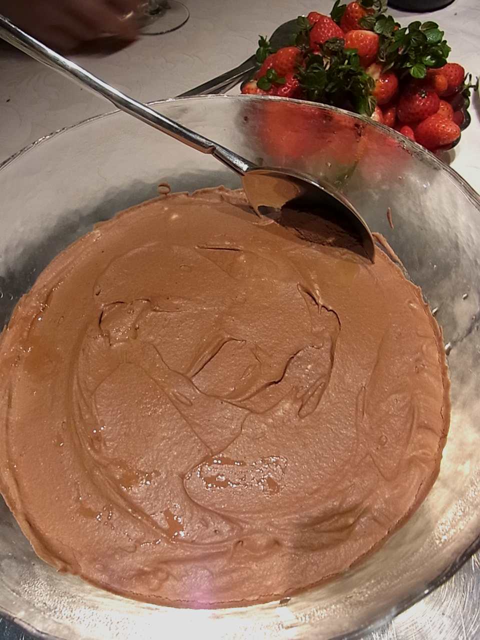 そして、ドルチェ。フランスのマルキーズを流用したビターチョコムース。チョコと生クリームだけで作る贅沢なムース。脂肪度の高い生クリーを、しっかり泡立て固めたので、かっちりしたムースに完成。でも、口溶けはふわふわで、しばらくはお気に入りのメニューになりそう。