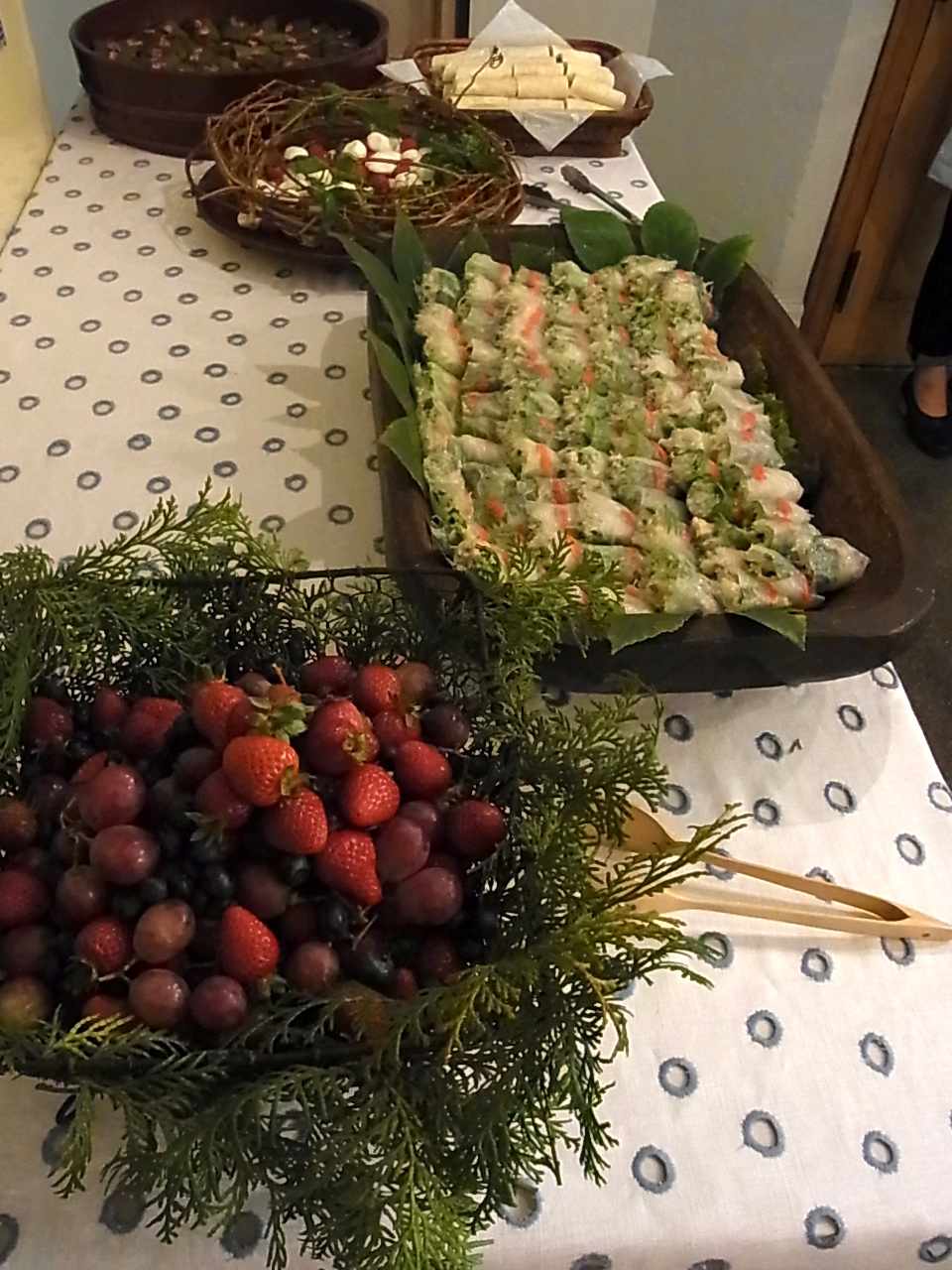 私なりに皆川さんの世界観に近づければと、試行錯誤のケータリング。春の夜のお祝いに、小さな花を添える機会を頂け、多謝。