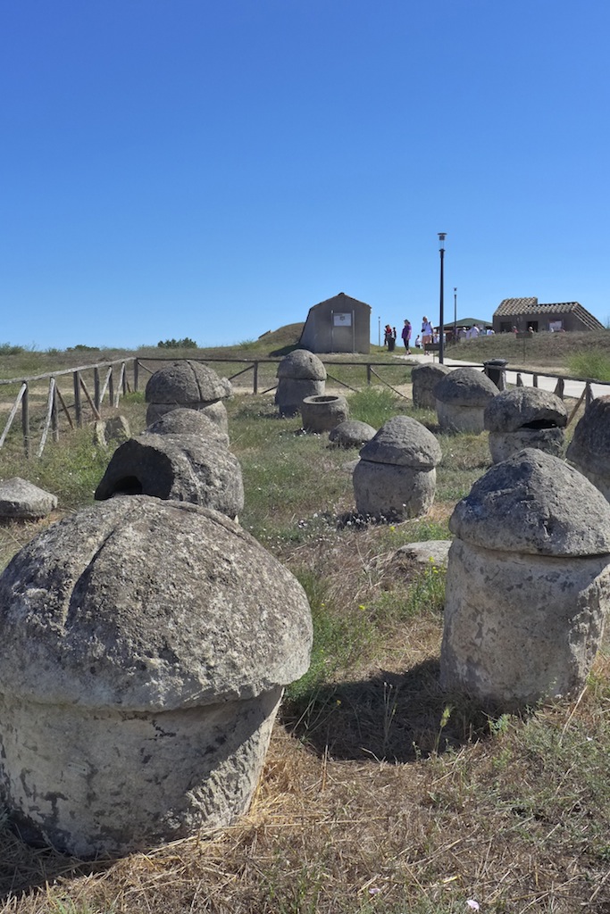 タルクイーニャのエトルスカン墓地保存地区へ。チェルヴェテリは円墳の外観を発掘していたがここは中を保存するため、あえて埋めたままになっている。
