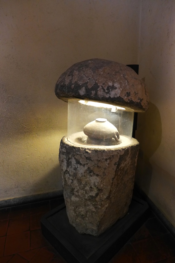 甕の中にはささやかな副葬品とともに遺骨が入れ埋められた。博物館に展示中。