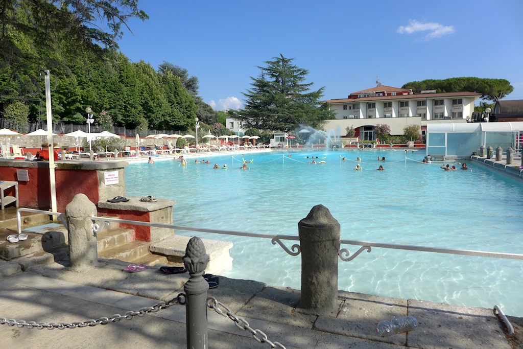 外に出るのは午前中だけと決めていたので、午後の時間をもてあました。車を飛ばしテルマエへ。かつてローマ法王もきたことから「法王の温泉」と呼ばれている。あ〜、やっと水着の出番。のんびりした時間を得、旅の疲れが癒える。
