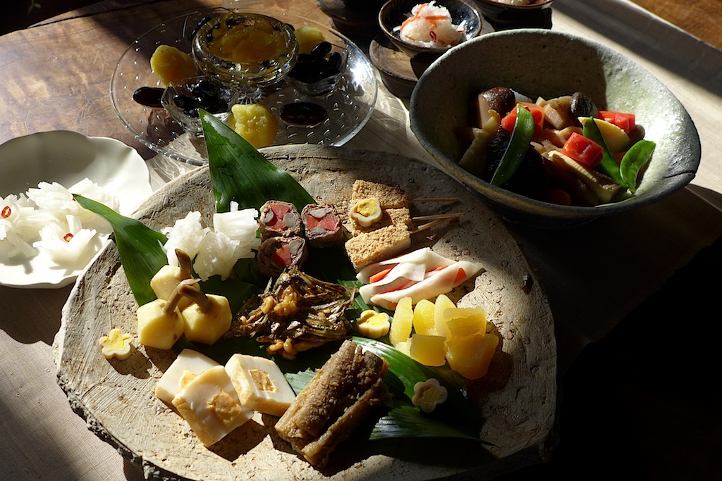 そんなお節をちょっぴりわけていただき、盛りつけ直し、自宅にての新春祝い。 それからゆっくり、日向神社に初詣。 天気にも恵まれた元日。 若水で口をすすぎ、 正月を迎えたという清々しい気持ちで山を下りる。 皆様、今年もよろしくお願いいたします。